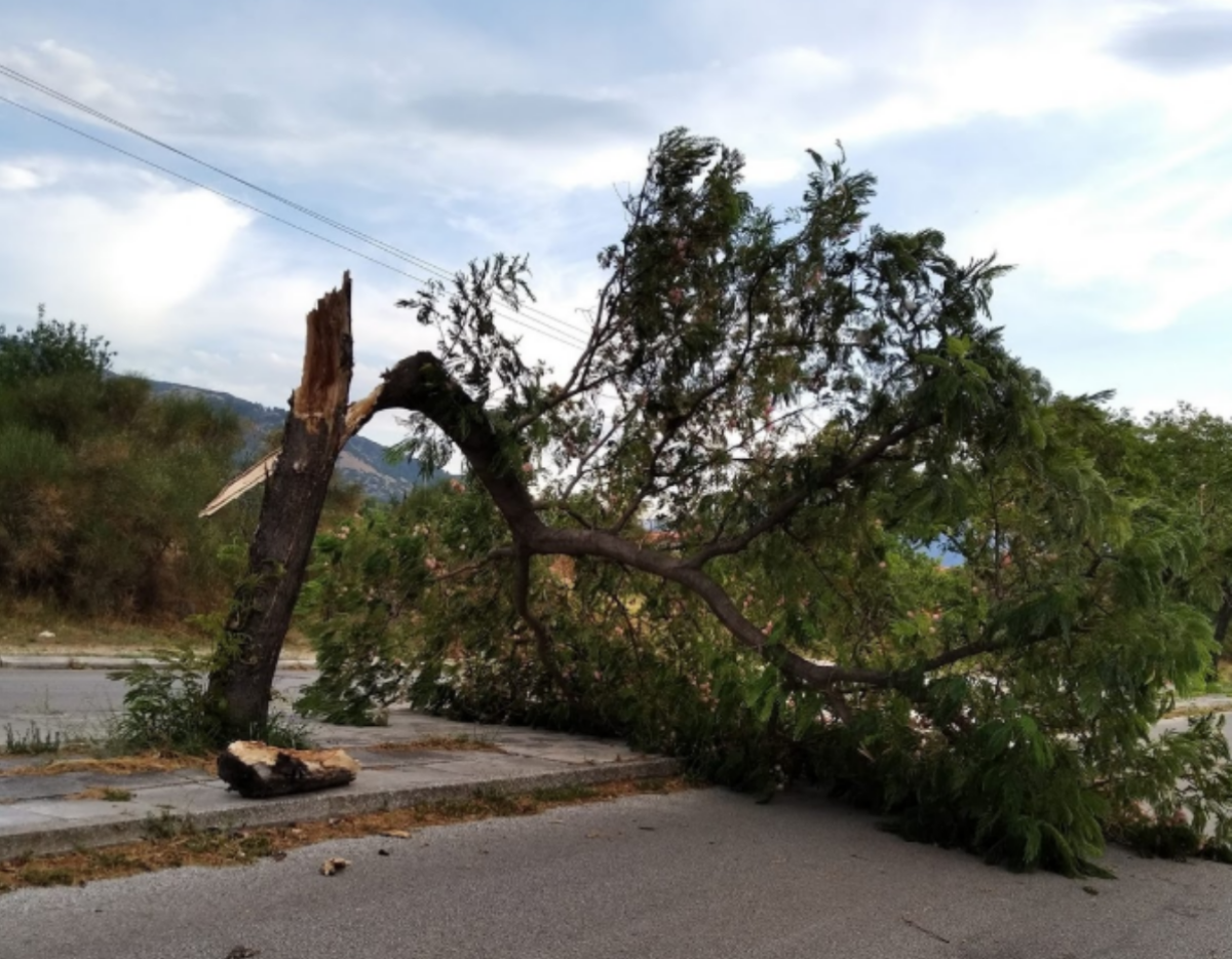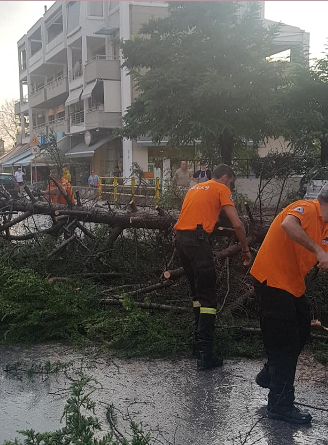 Οι άνεμοι προκάλεσαν την πτώση σαράντα δέντρων, έσπασαν τζάμια και παρέσυραν ομπρέλες, ξαπλώστρες και τραπεζοκαθίσματα στο παραλιακό μέτωπο.