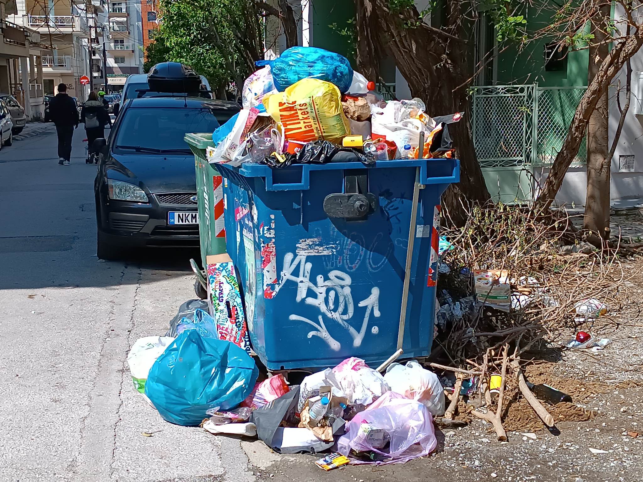 Μάλιστα το πρόβλημα οξύνεται, αν στην περιοχή υπάρχει κάποιο κατάστημα εστίασης ή σούπερ μάρκετ, με τα υλικά να ξεχειλίζουν μέσα σε δρόμους και πάρκα.