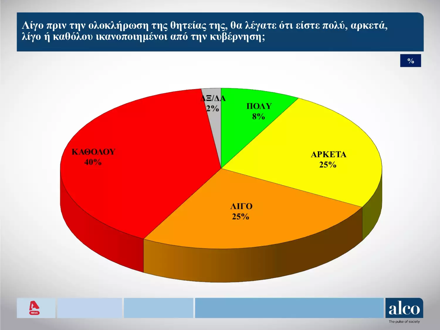 Καθόλου ικανοποιημένο πάντως από την κυβέρνηση δηλώνει το 40% των πολιτών που ρωτήθηκαν - Αναλυτικά όλες οι καρτέλες