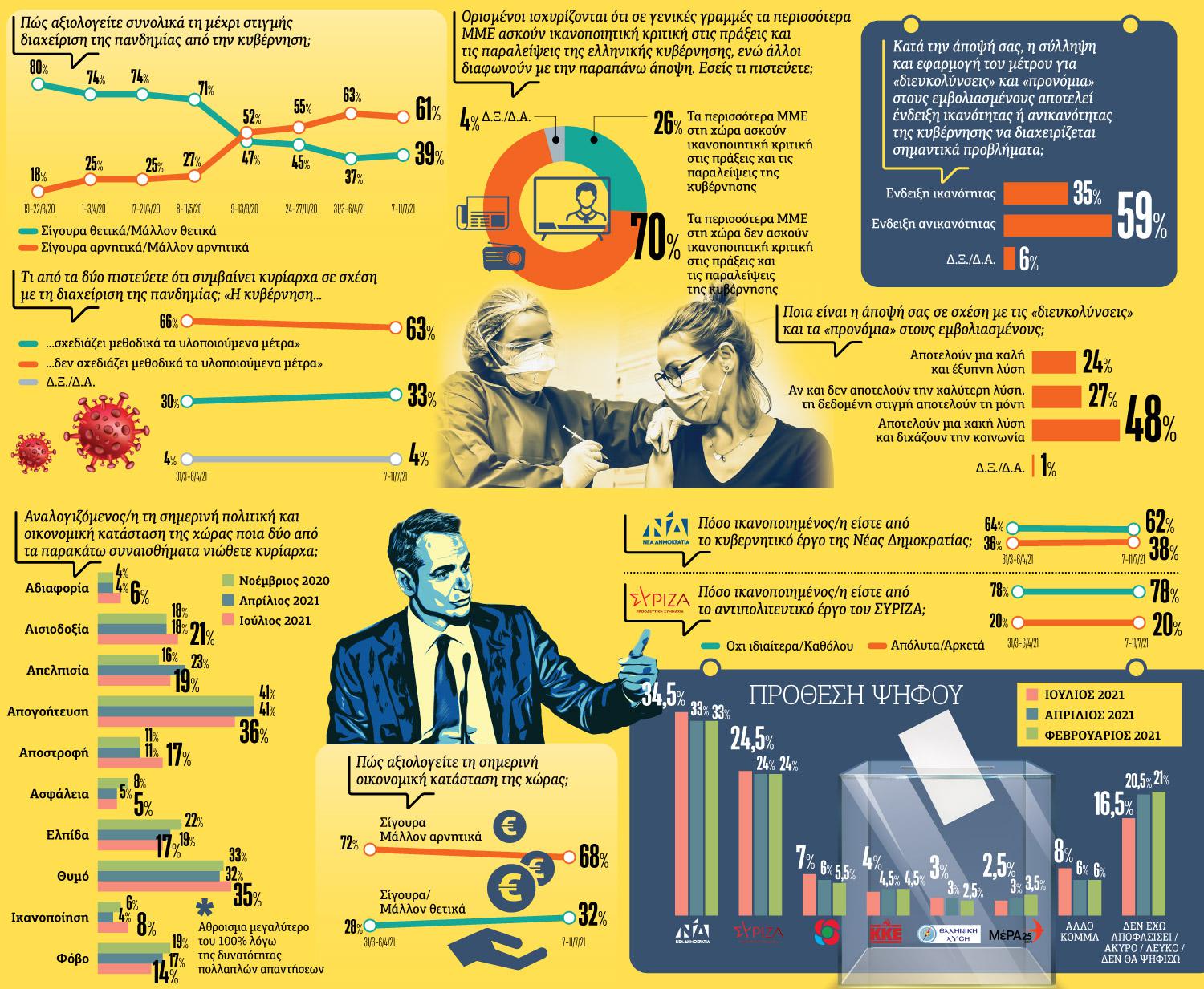 Τι απαντούν οι πολίτες για τους εμβολιασμούς, τα ΜΜΕ, την οικονομία και την πρόθεση ψήφου.