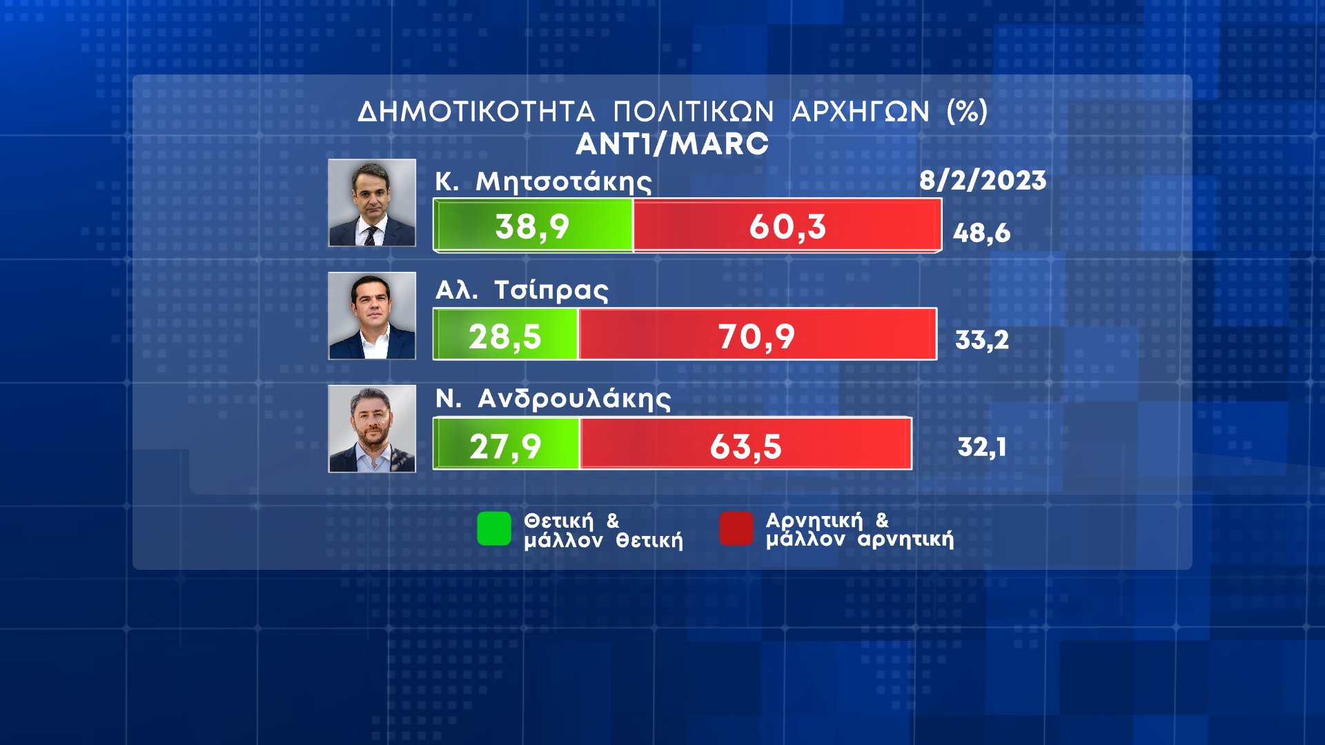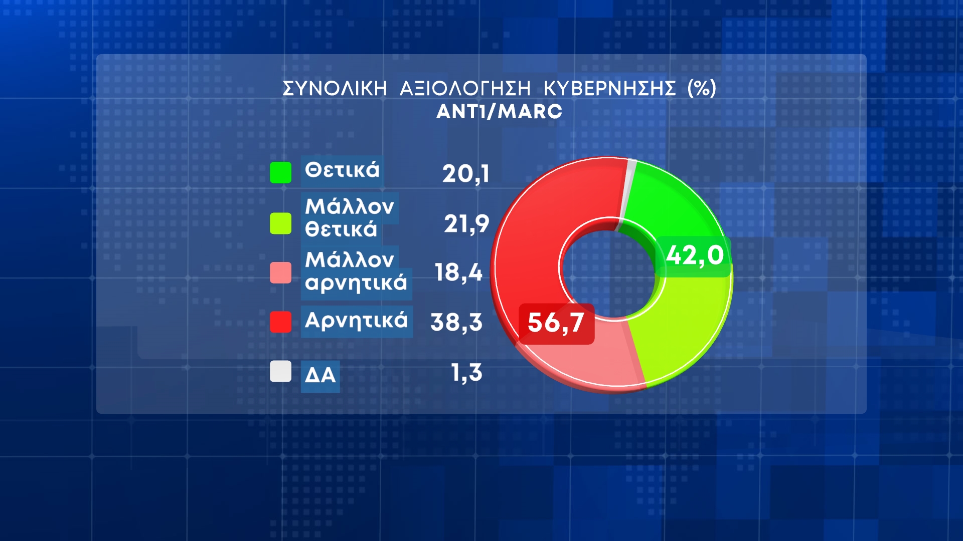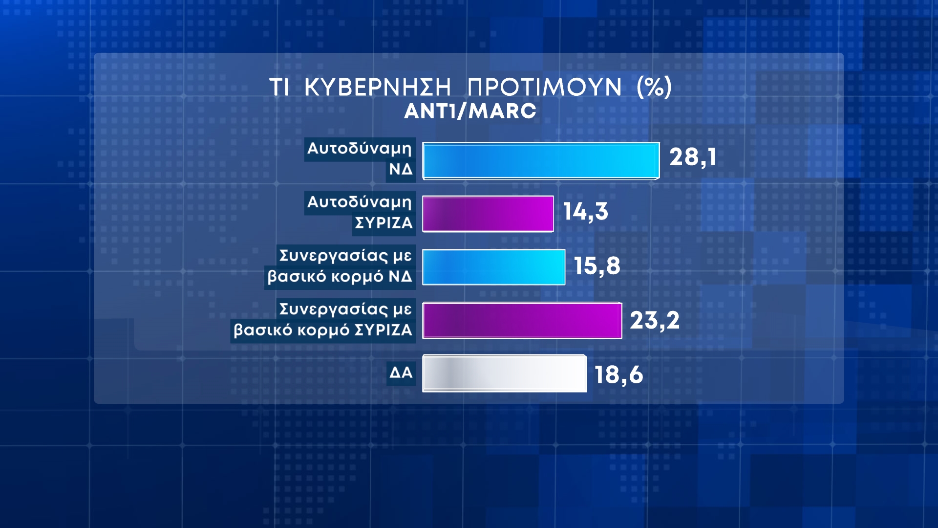 Νέα δημοσκόπηση παρουσίασε στο κεντρικό δελτίο ειδήσεων του ο Ant1 σε συνεργασία με την MARC.