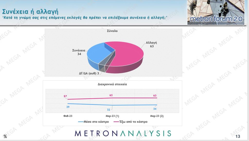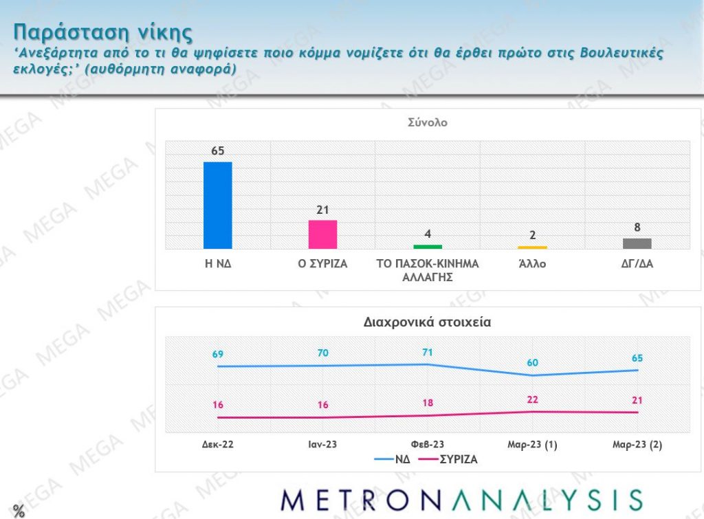 Εγινε την περίοδο 22-28 Μαρτίου και «πιάνει» και γεγονότα όπως οι δηλώσεις Ανδρουλάκη για κυβέρνηση χωρίς Μητσοτάκη, Τσίπρα, η επαναλειτουργία του σιδηροδρόμου, η οξύτατη πολιτική αντιπαράθεση κ.λπ.