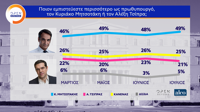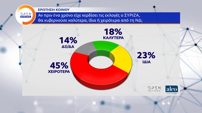 Δημοσκόπηση OPEN: Διαφορά 14 μονάδων ΝΔ-ΣΥΡΙΖΑ — Τι ανησυχεί τους πολίτες