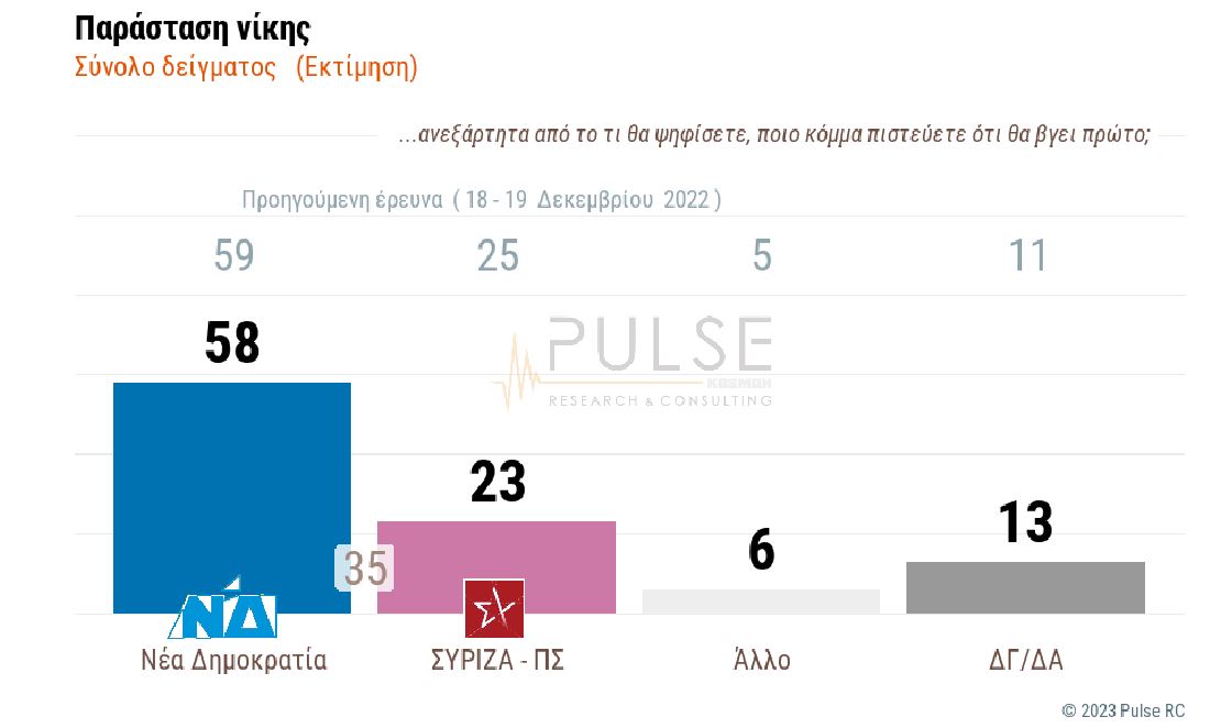 Συγκεκριμένα, η ΝΔ λαμβάνει το 58% και ΣΥΡΙΖΑ μόλις 23%.