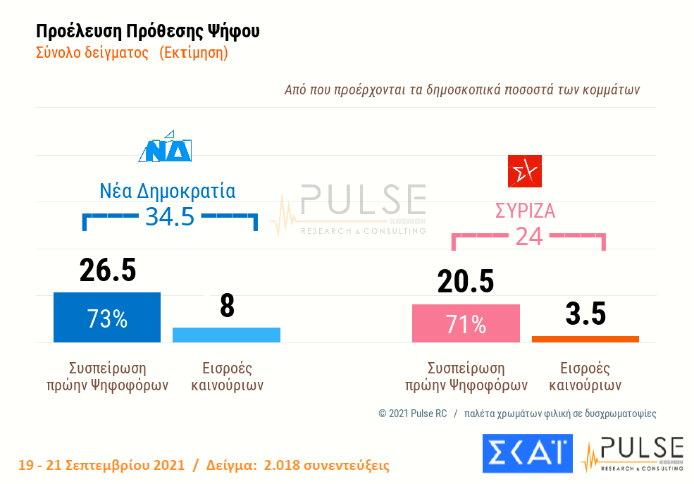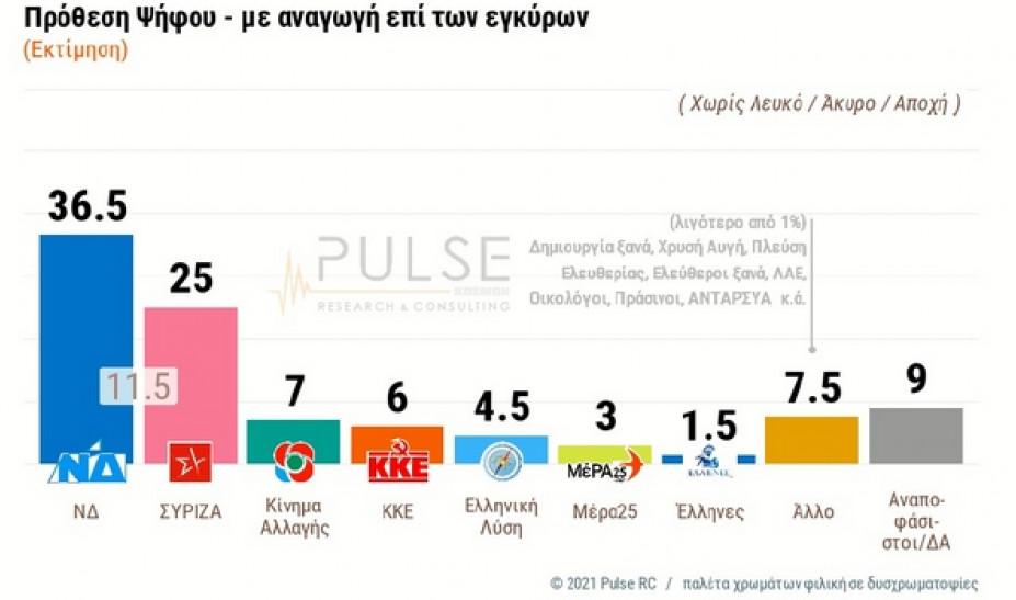 Δημοσκόπηση PULSE: 11,5% η διαφορά ΝΔ–ΣΥΡΙΖΑ