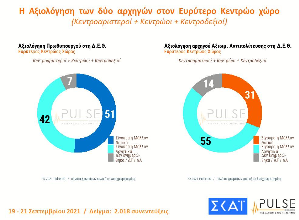 Ως προς την αξιολόγηση των του προέδρου του ΣΥΡΙΖΑ στη ΔΕΘ, το 30% συνολικά τον κρίνουν σίγουρα θετικά (14%) ή μάλλον θετικά (16%), ενώ το 50% συνολικά τον αξιολογούν σίγουρα αρνητικά (31%) ή μάλλον αρνητικά (19%).