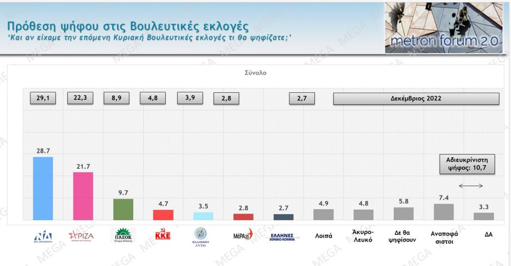 Η αδιευκρίνιστη ψήφος είναι στο 10,7%.