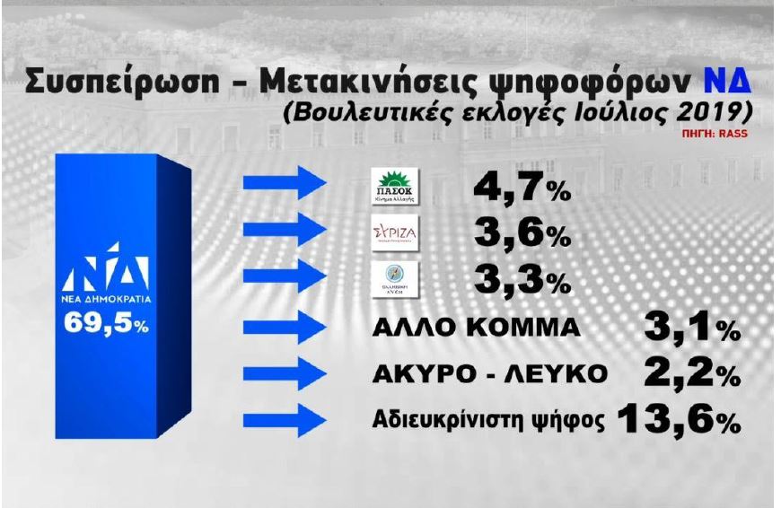 Στην παράσταση νίκης, ποιο κόμμα δηλαδή πιστεύουν οι πολίτες ότι θα έρθει πρώτο, το 63,5% λέει ΝΔ και μόλις 2% ο ΣΥΡΙΖΑ.