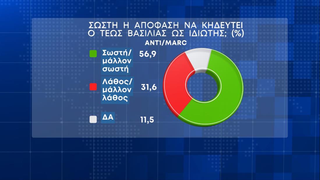 Η πλειοψηφία των πολιτών κρίνει ότι ορθά ο τέως βασιλιάς Κωνσταντίνος κηδεύτηκε ως ιδιώτης με ποσοστό, 56.9%