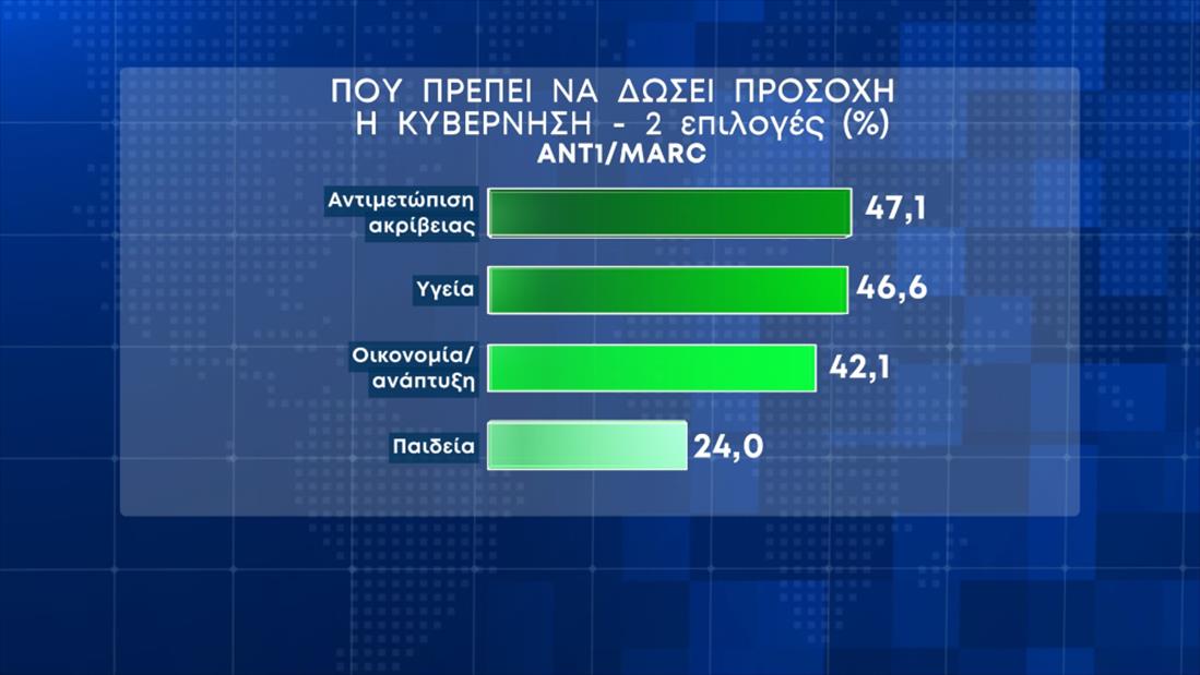 Η αντιμετώπιση της ακρίβειας ξεχωρίζει και στις απαντήσεις για το που «πρέπει να δώσει προσοχή η Κυβέρνηση».