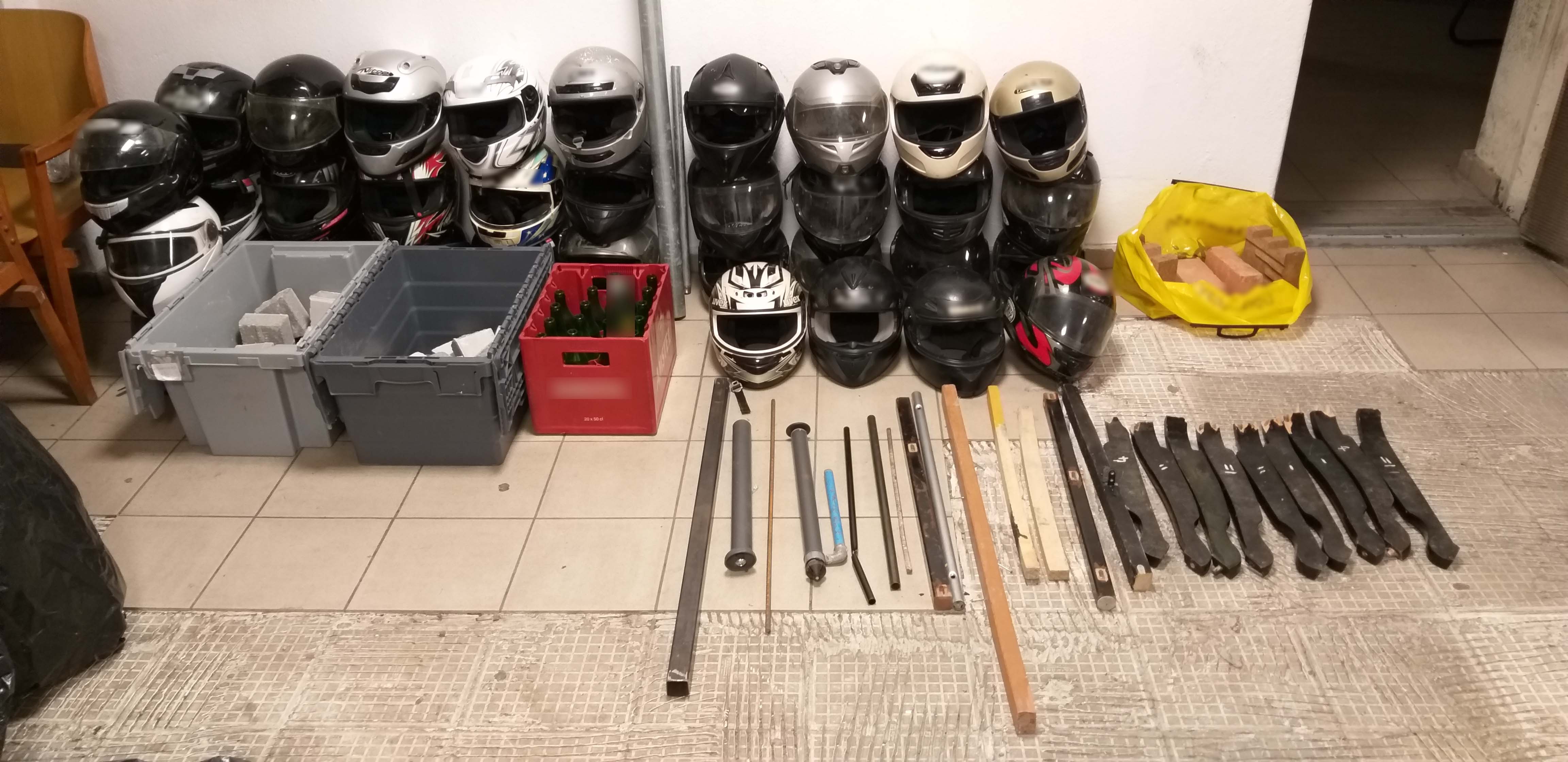 Στο πλαίσιο των ερευνών, που έλαβαν χώρα παρουσία εκπροσώπων δικαστικής Αρχής, εντός χώρων δεκατριών (13) οικημάτων που στεγάζονται οι λέσχες αυτές και δραστηριοποιούνται φίλαθλοι των ομάδων της πόλης, βρέθηκαν και κατασχέθηκαν: