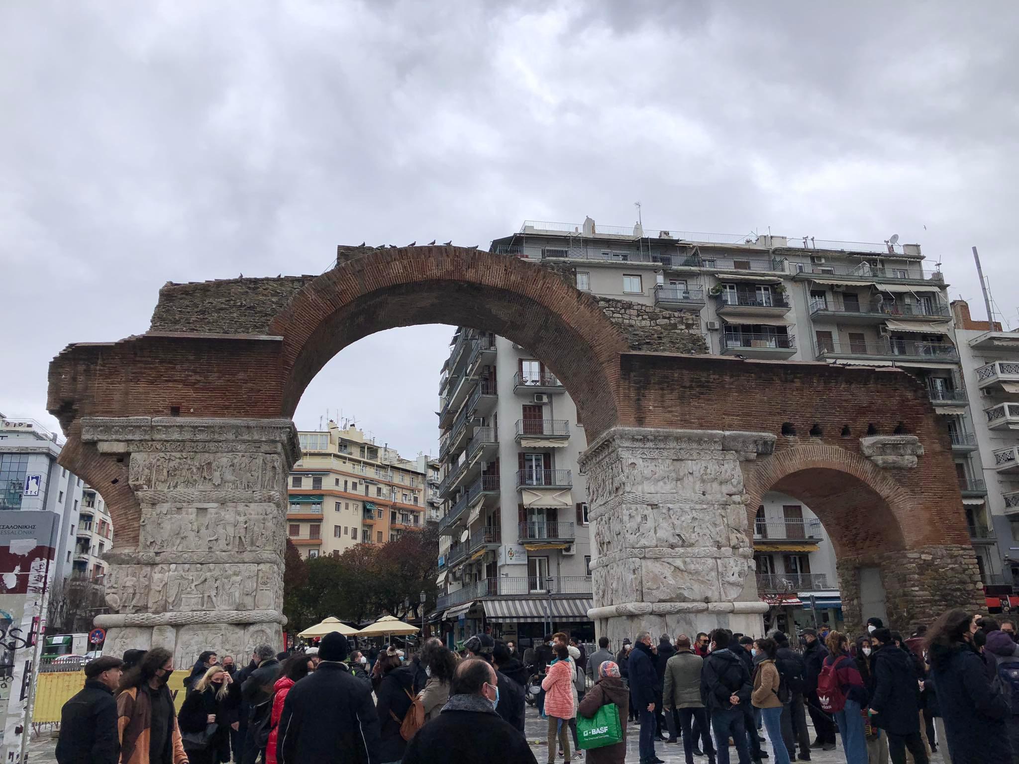 Στις 12:00 στην Καμάρα, όπως και σε άλλες ελληνικές πόλεις, καλλιτέχνες από τη Θεσσαλονίκη και τη Β. Ελλάδα, παρά τον βροχερό καιρό, έδωσαν δυναμικό παρών, στο πανακαλλιτεχνικό συλλαλητήριο.