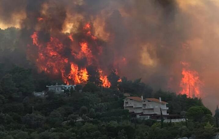 «Κήρυξη του δήμου σε κατάσταση έκτακτης ανάγκης. Παρακαλούνται οι κάτοικοι των περιοχών Αγκώνας, Βλαστού, Κυψέλης, Πανοράματος, Αγίας Βαρβάρας και όλων των οικισμών πέριξ των Αγίων Αποστόλων όπως εκκενώσουν άμεσα τα σπίτια τους λόγω επικινδυνότητας της πυρκαγιάς, και να κατευθυνθούν παραλιακά».