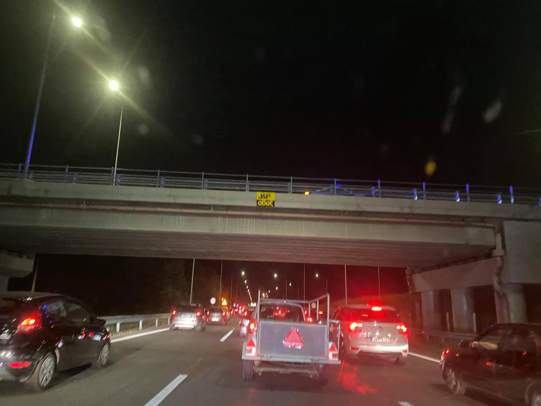 Μάλιστα, τα διόδια στην Εθνική Οδό δεν άνοιξαν τις μπάρες ώστε να αποσυμφορηθεί η κίνηση και να συνεχίσουν την διαδρομή τους οι οδηγοί.