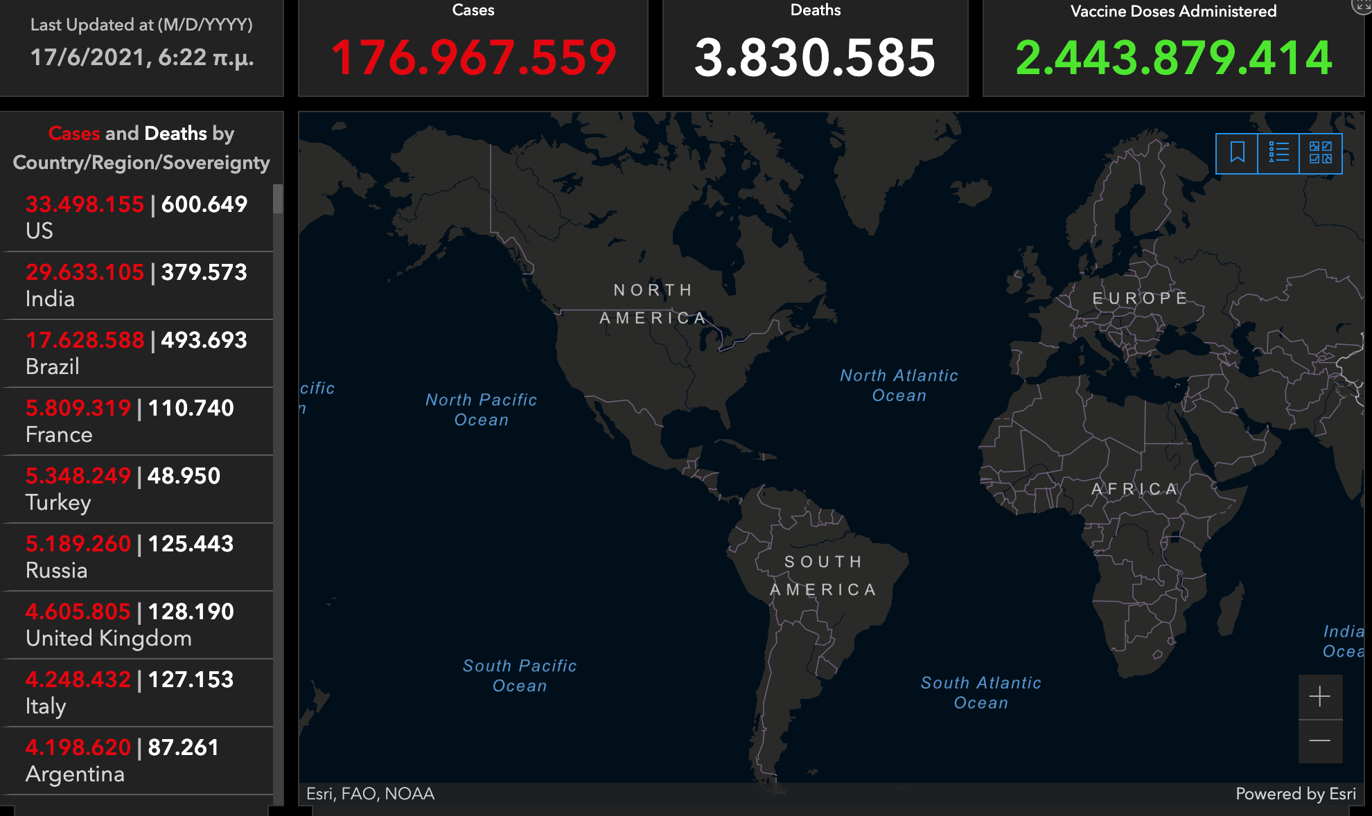 Η κατάσταση με την πανδημία παγκοσμίως το πρωί της Πέμπτης 17/6