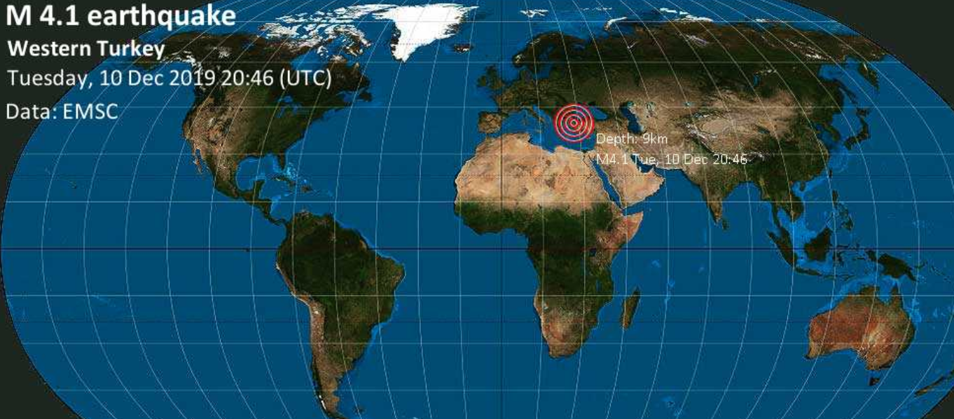 Η πρώτη σεισμική δόνηση είχε εστιακό βάθος 2 χιλιομέτρων και το επίκεντρο εντοπίζεται 17 χιλιόμετρα από την πόλη Μπιγκαντίκ και μια δεύτερη λίγα λεπτά αργότερα με βάθος 10 χιλιομέτρων το επίκεντρο της. .
