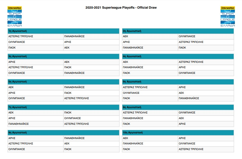 Το πλήρες πρόγραμμα της κλήρωσης που έγινε σήμερα στην Super League.
