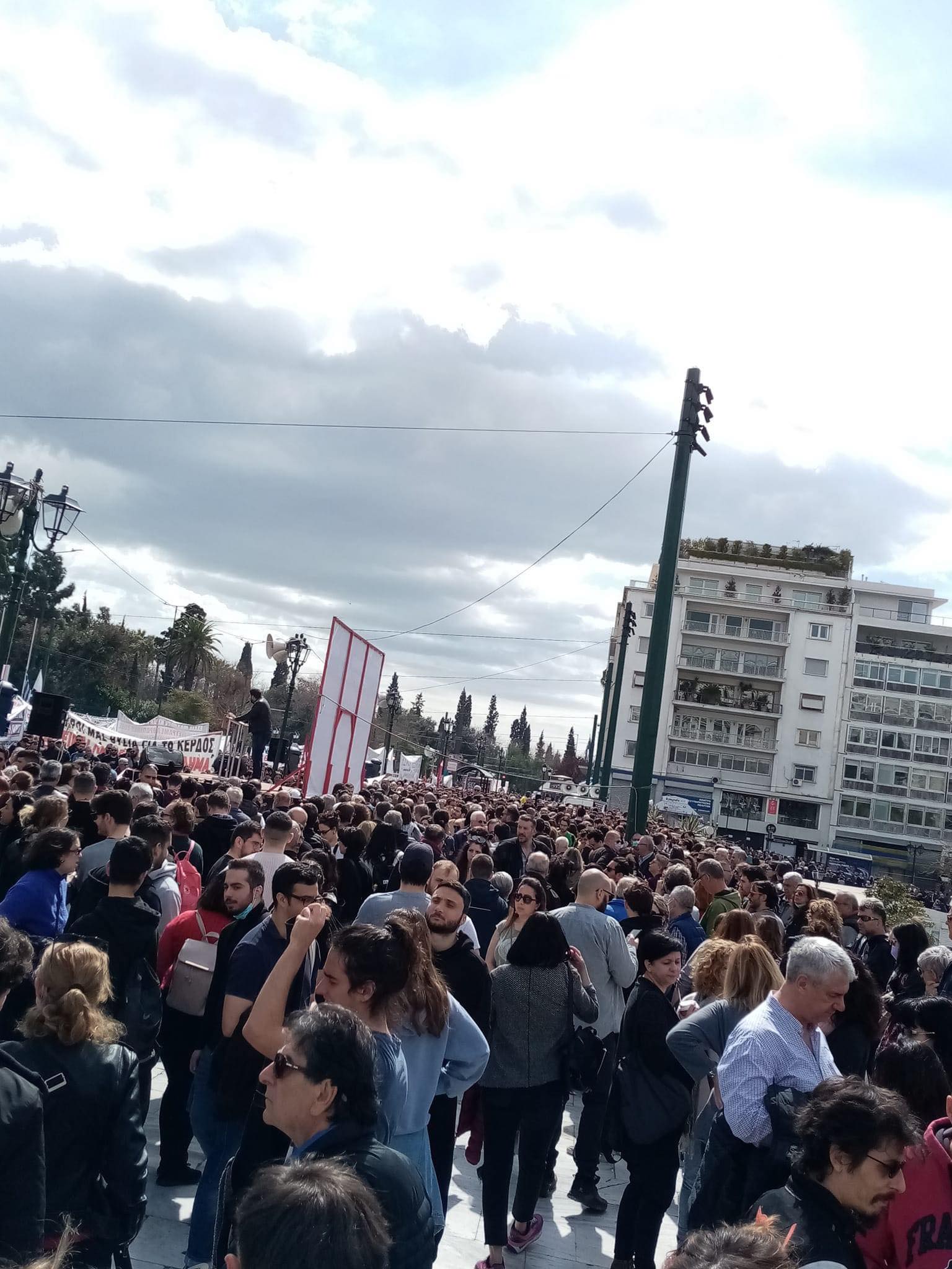 Σε εξέλιξη είναι αυτή την ώρα συλλαλητήριο στο Σύνταγμα για το τραγικό σιδηροδρομικό δυστύχημα στα Τέμπη.