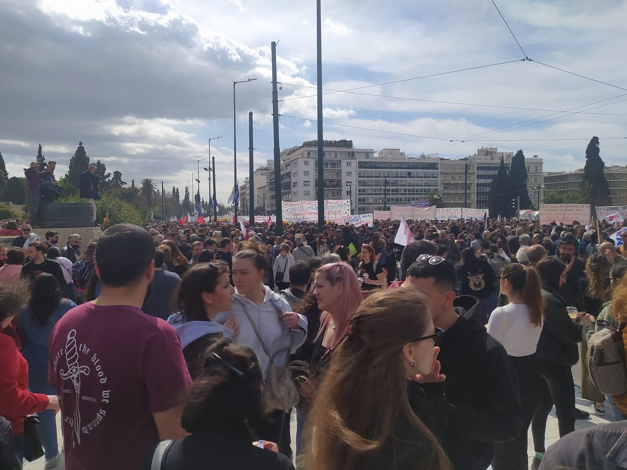 Νεολαία και εργαζόμενοι διαμαρτύρονται για το δυστύχημα στα Τέμπη, φωνάζοντας αντικυβερνητικά συνθήματα, αλλά και προβάλλοντας αιτήματα κατά των ιδιωτικοποιήσεων και των πολιτικών που εφαρμόζονται.