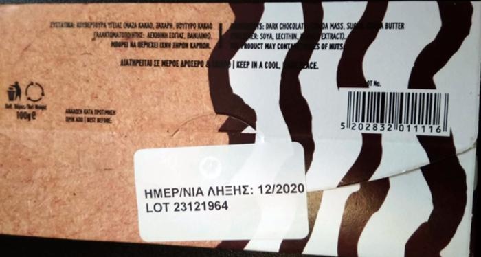 Συγκεκριμένα, πρόκειται για το προϊόν “Σοκολάτα υγείας ΠΟΛΥΧΩΡΟΣ ΓΕΥΣΕΩΝ ΧΡΥΣΟ” σε συσκευασία 100g, με ημερομηνία ελάχιστης διατηρησιμότητας 12-2020.