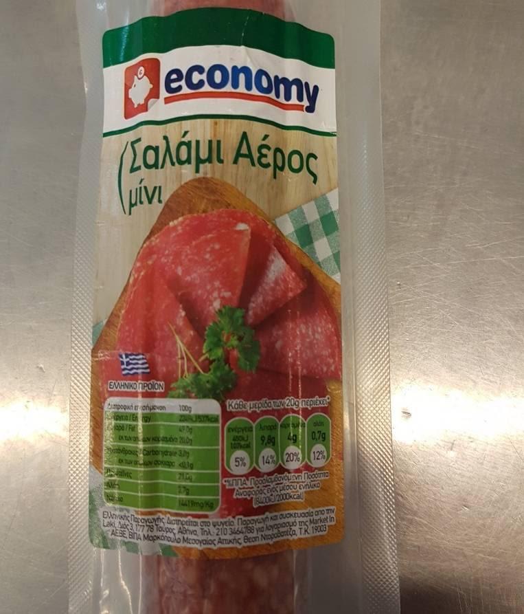 α) «Economy – Σαλάμι αέρος, τ. Θάσου», βάρος: 120 g σε φέτες, αριθ. Παρτίδας: L 02196, ημ. ανάλωσης έως: 10.01.2021.