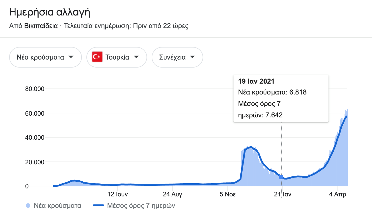 Εφιαλτική αύξηση των κρουσμάτων στην Τουρκία- Πάνω από 62 χιλιάδες σε ένα 24ωρο