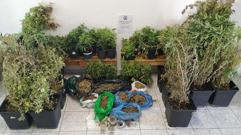 ακατέργαστη κάνναβη βάρους 6 κιλών και 342,5 γραμμαρίων, 46,9 γραμμάρια κατεργασμένης κάνναβης, 88,3 γραμμάρια χασισέλαιου, υγρό απόσταγμα κάνναβης, 2 ηλεκτρονικές ζυγαριές ακριβείας, νάιλον τεμάχια για τη συσκευασία κάνναβης και εξοπλισμός υδροπονικής καλλιέργειας (λαμπτήρες, ανακλαστήρες, θερμαντικά σώματα, ανεμιστήρες, θερμόμετρα κ.α.).