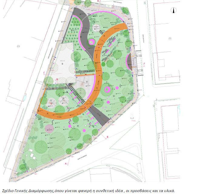 Η μελέτη προβλέπει την οργάνωση αστικού περιπάτου, μιας ελλειπτικής διαδρομής, καθαίρεση του υφιστάμενου κτίσματος του αναψυκτηρίου και τοιχίων παρτεριών, του εγκαταλελειμμένου περιπτέρου, ενώ αποξηλώνονται άρρωστα δένδρα και φυτεύονται νέα, υγιή και κατάλληλα για την περιοχή και τον τόπο. Τοποθετούνται σε όλη την έκταση του πάρκου καθιστικά, πέργκολες, εξοπλισμός άθλησης, μονοπάτια και αρωματικός κήπος. Επίσης, προβλέπεται νέος εξοπλισμός φωτισμού και αστικός εξοπλισμός με κάδους απορριμμάτων και ανακύκλωσης και έξυπνων καθιστικών, τα οποία λειτουργούν με την ηλιακή ενέργεια η οποία αποθηκεύεται και είναι διαθέσιμη όλες τις ώρες της μέρας.