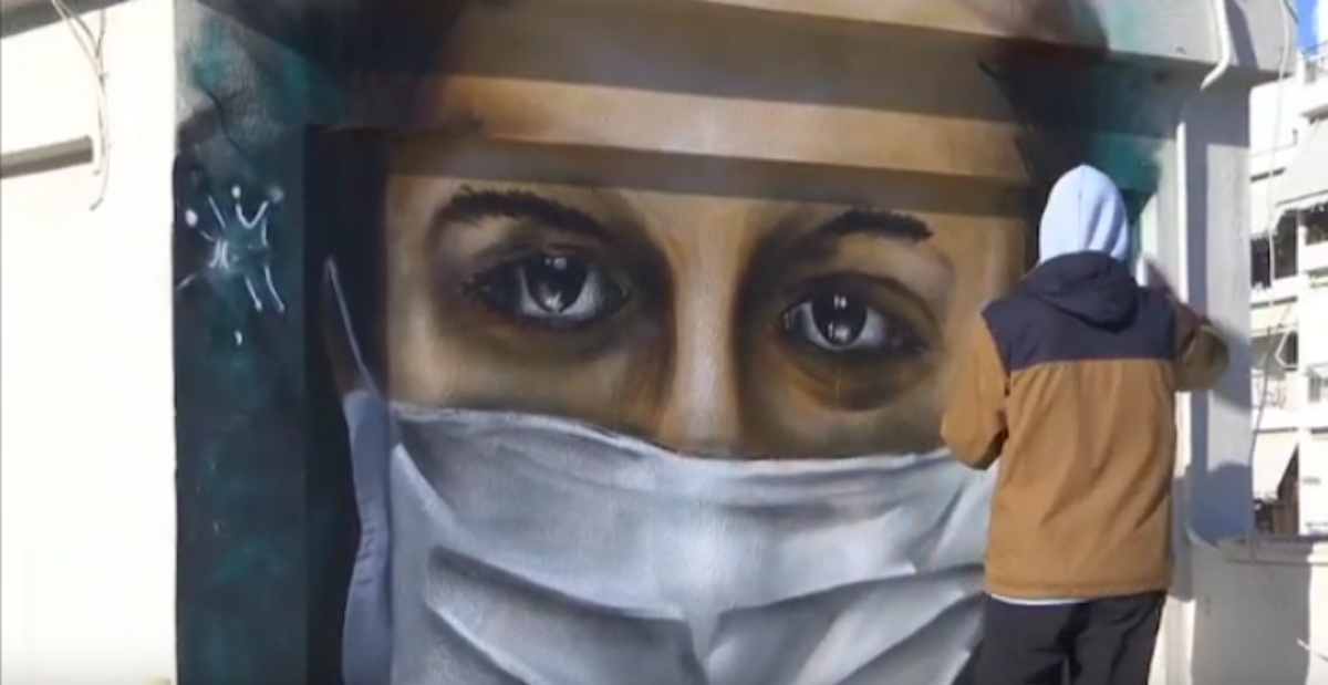 ΕΙΚΟΝΑ: Ένας 16 χρονός Έλληνας δημιουργεί γκράφιτι με θέμα την πανδημία