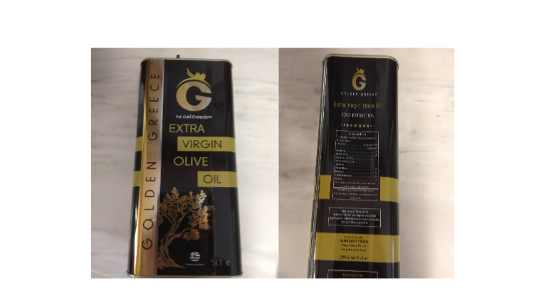 Συγκεκριμένα, πρόκειται για το Εξαιρετικό Παρθένο Ελαιόλαδο (EXTRA VIRGIN OLIVE OIL), με την εμπορική ονομασία “GOLDEN GREECE”, σε μεταλλική συσκευασία των 5 λίτρων, το οποίο επί της συσκευασίας αναγράφει ότι είναι 100% ελληνικό προϊόν και δεν αναγράφονται ημερομηνία ανάλωσης και αριθμός παρτίδας, επωλείτο από το κατάστημα ΙΟΝΙΔΗΣ ΔΙΟΝΥΣΙΟΣ, Νέο Συρράκο 35 στην Ελευθερούπολη Καβάλας και αγοράσθηκε από την Golden Greece LTD, Import-Export, Ul.Han Krum 40str., 8000 Burgas Bulgaria.