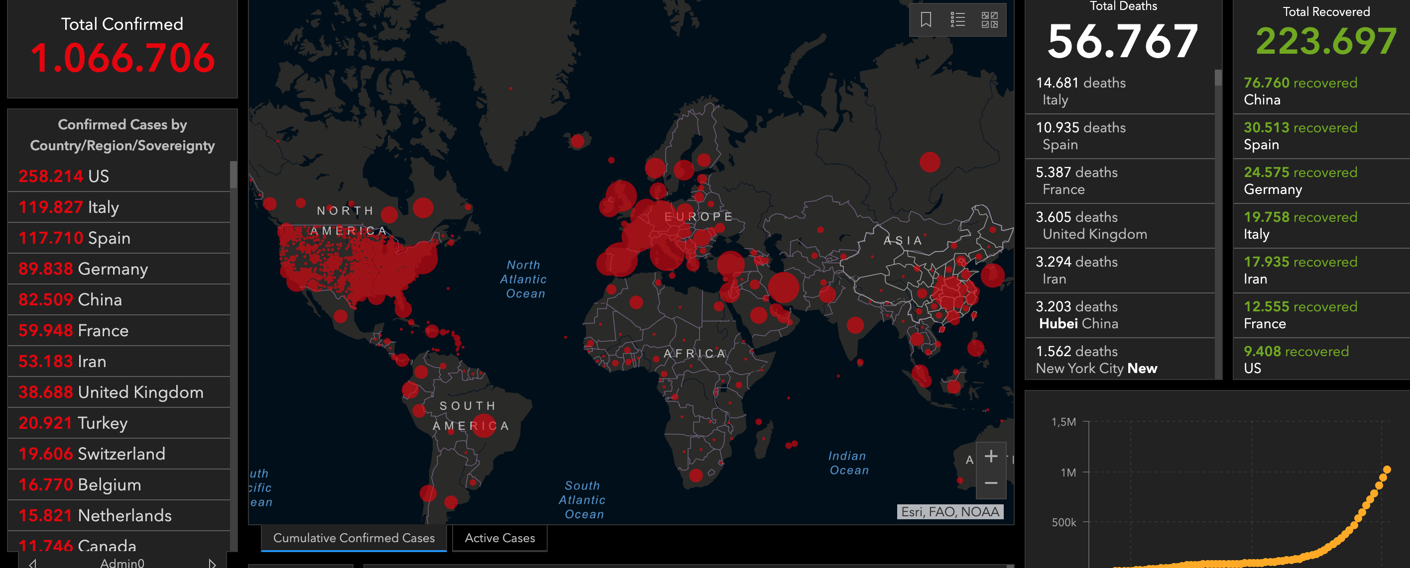 1066706 κρούσματα, 56767 νεκροί στον κόσμο