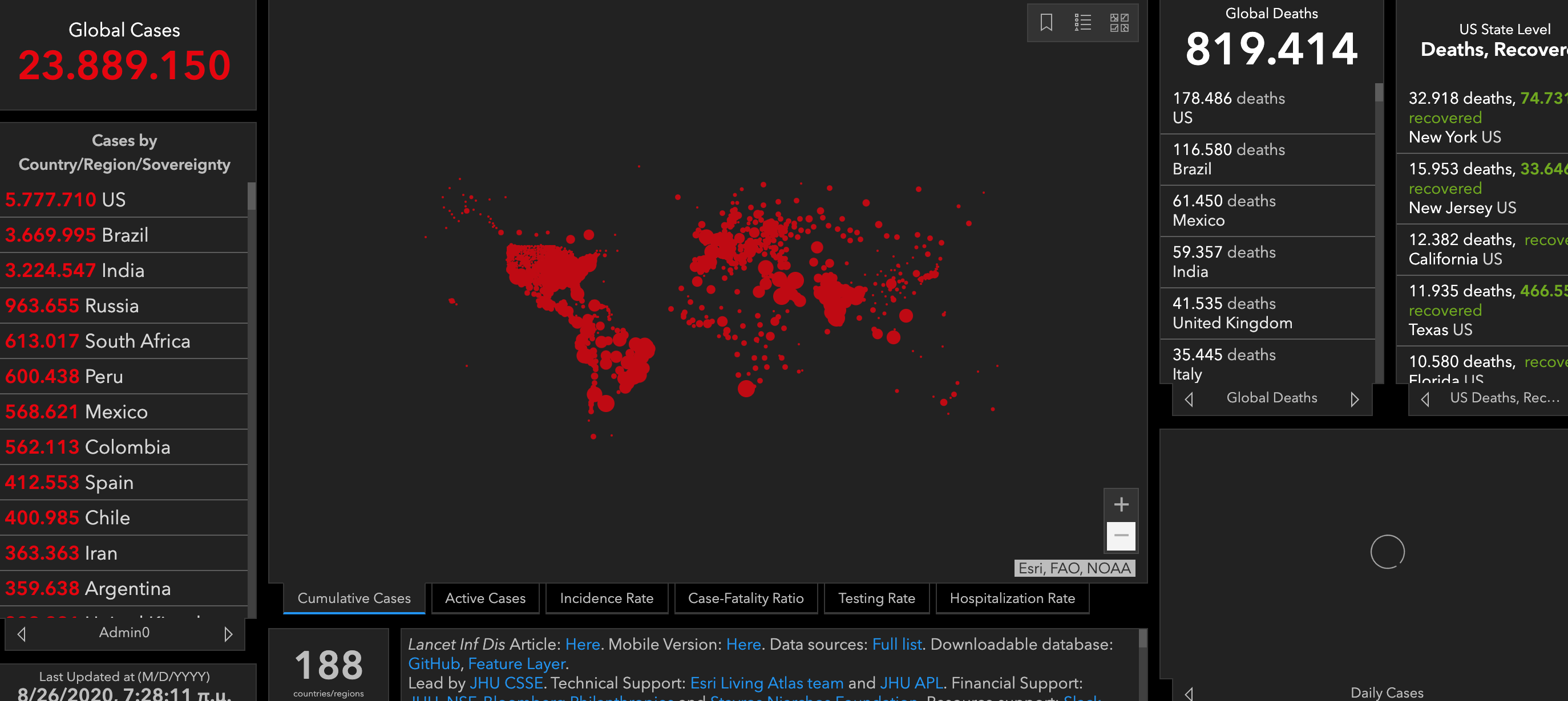 Λίγο νωρίτερα, το πανεπιστήμιο Τζονς Χόπκινς δημοσιοποιούσε λίγο χαμηλότερο απολογισμό, 178.347 νεκρών.