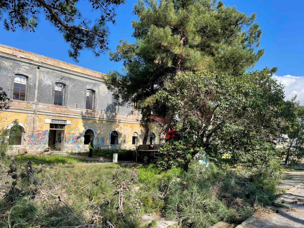 Την τελευταία εβδομάδα (14-26 Φεβρουαρίου), συνεχίστηκαν οι εργασίες ανανέωσης και προστασίας της υφιστάμενης βλάστησης, με κοπή δέντρων (πεύκα, ακακίες, λιγούστρα) καθώς και σχολαστικά κλαδέματα σε πεύκα μεγάλης ηλικίας, κυρίως στην περιοχή της μνήμης, στην ‘’πλατεία’’ με την εμφατική παρουσία των δύο ιστορικών κτιρίων στρατωνισμού Α2 και Α3 του πρώην στρατοπέδου.