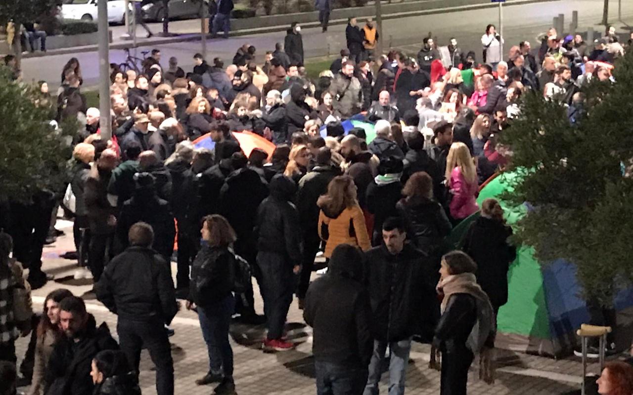 Σκηνές έξω από το Δημαρχιακό Μέγαρο Θεσσαλονίκης έστησαν διαδηλωτές κατά του υποχρεωτικού εμβολιασμού με σκοπό να διανυκτερεύσουν στο σημείο.