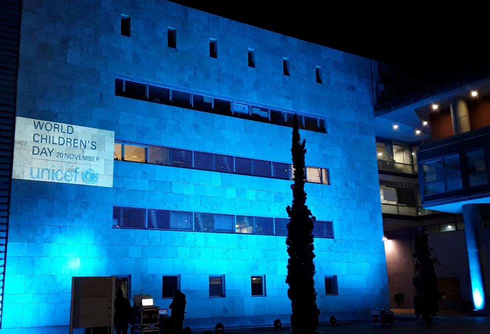 Στο κυανό χρώμα του ΟΗΕ και της UNICEF φωτίστηκε απόψε το Δημαρχείο Θεσσαλονίκης, με την ευκαιρία του εορτασμού της Παγκόσμιας Ημέρας για τα Δικαιώματα του Παιδιού. Η Παγκόσμια Ημέρα Παιδιού είναι μια διεθνής ημέρα δράσης για τα παιδιά και εορτάζεται με αφορμή την επέτειο υιοθέτησης από τη Γενική Συνέλευση του ΟΗΕ, το 1989, της Διεθνούς Σύμβασης για τα Δικαιώματα του Παιδιού.