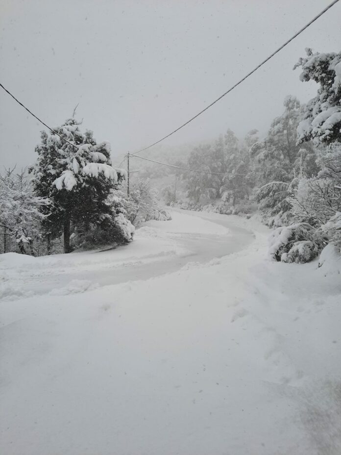 Εκχιονιστικά βρέθηκαν στους δρόμους καλύπτοντας την περιφερειακή οδό από Σκιάθο έως Κουκουναριές, την περιοχή Καλύβια και την Πλαγιά.