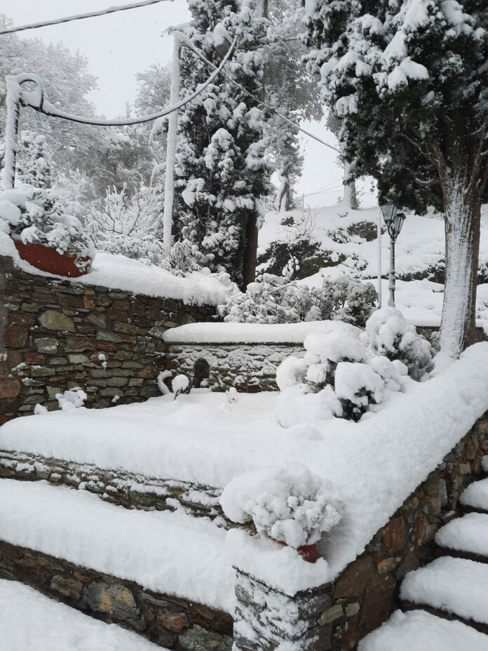 Στη Σκιάθο οι χιονοπτώσεις ξεκίνησαν από χθες το βράδυ με αποτέλεσμα οι κάτοικοι να ξυπνήσουν σε ένα λευκό τοπίο.