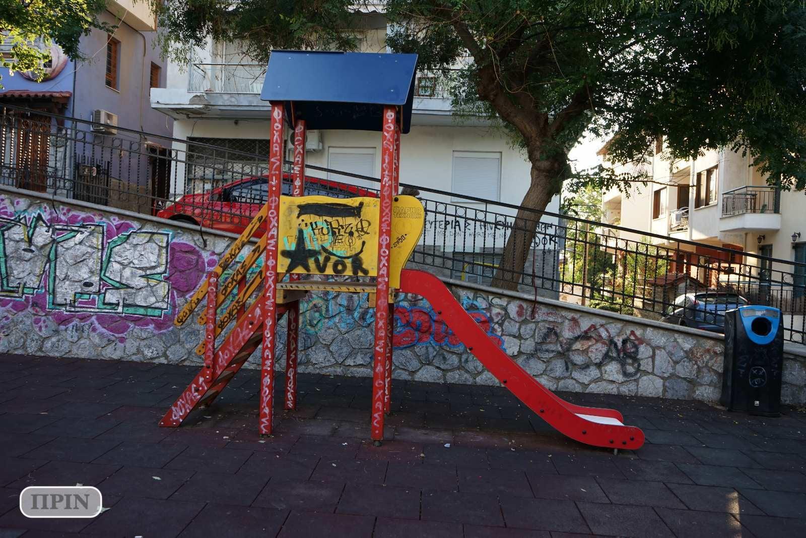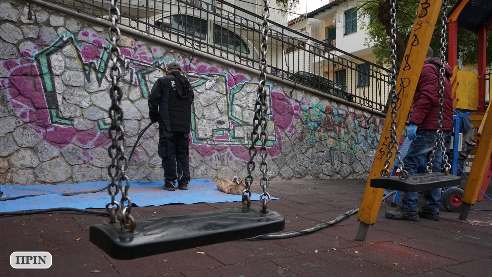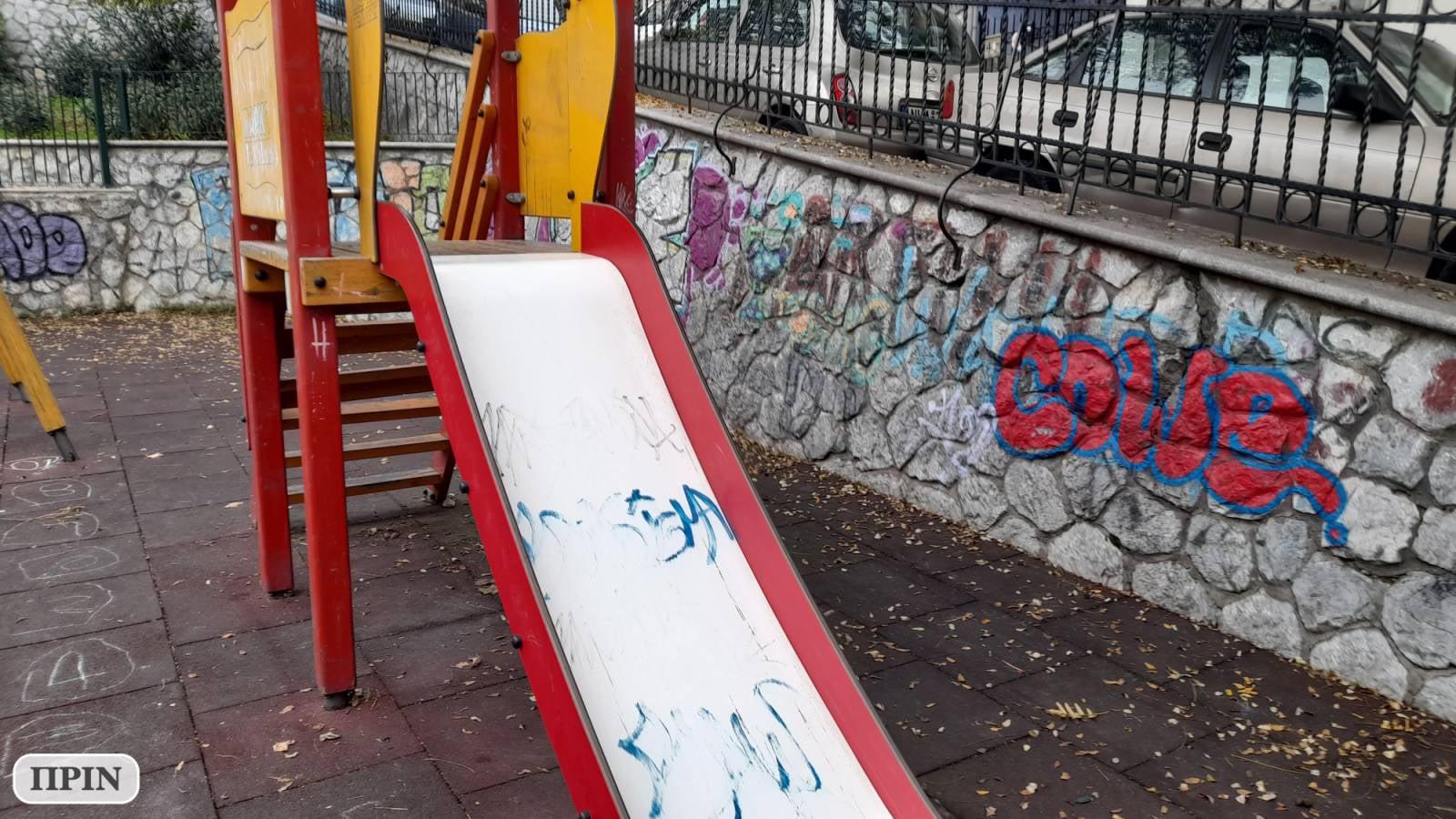 Εκτεταμένη επιχείρηση για τον καθαρισμό των γκράφιτι από μαρμάρινες επιφάνειες, πέτρινους τοίχους και εξοπλισμό στην παιδική χαρά της πλατείας Τερψιθέας στην Άνω Πόλη πραγματοποιούν συνεργεία του Δήμου Θεσσαλονίκης.