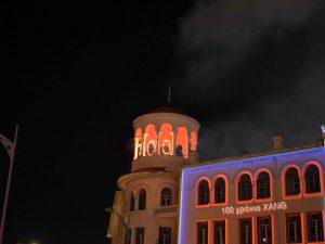 Ο Λευκός Πύργος ντύθηκε για τρεις ώρες στα χρώματα της ΧΑΝΘ, ενώ ακολούθησε ένα εντυπωσιακό video mapping με τίτλο «100 χρόνια Χ.Α.Ν.Θ.: ένα με την πόλη, ένα με σένα» που είχε την επιμέλεια της Όλγας Σφέτσα.