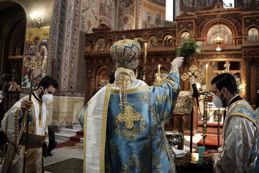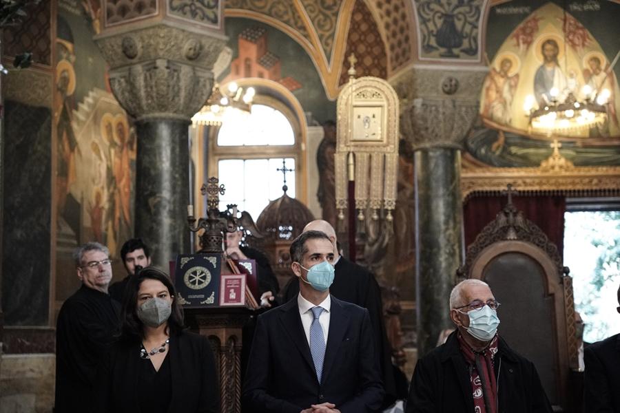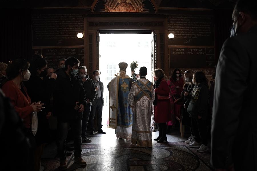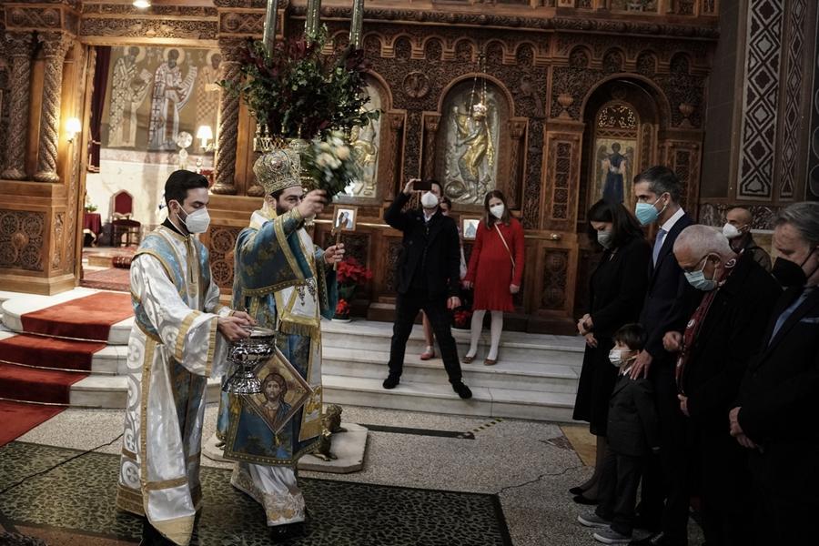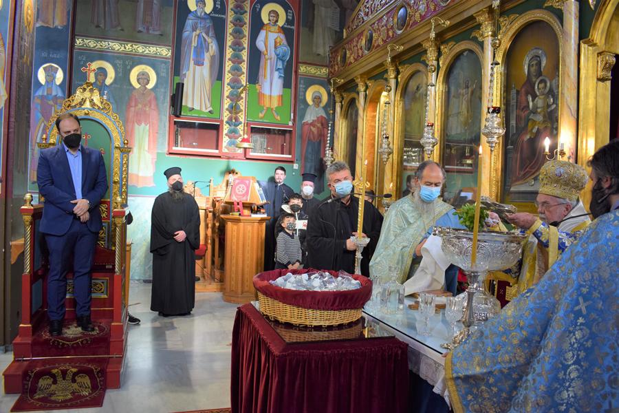 Νωρίτερα, στην τέλεση της Θείας Λειτουργίας προεξήρχε ο επίσκοπος Ωρεών Φιλόθεος, αρχιγραμματέας της Ιεράς Συνόδου της Εκκλησίας της Ελλάδος.