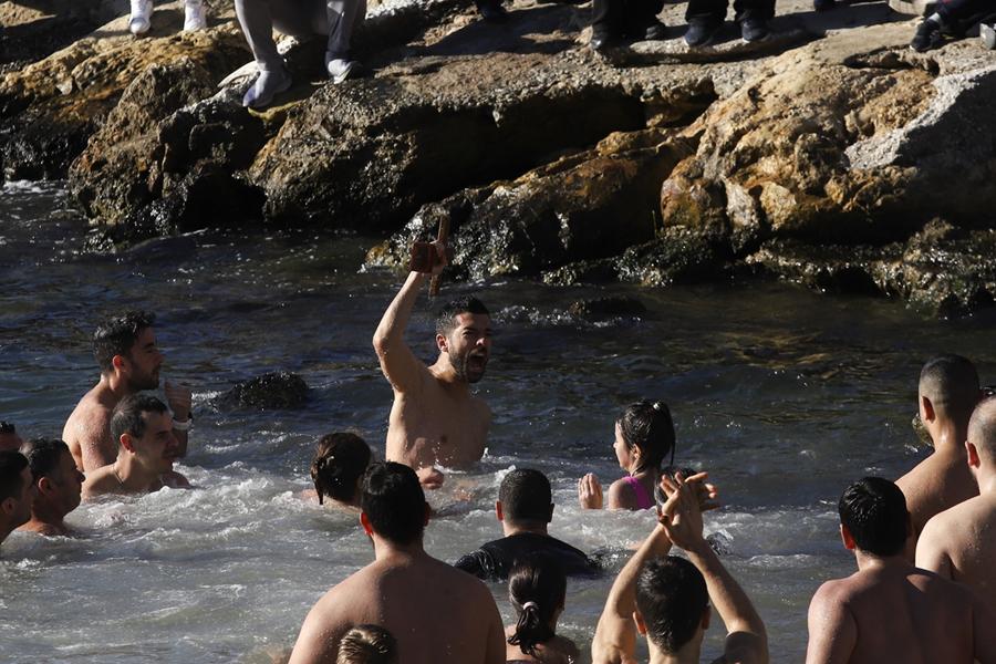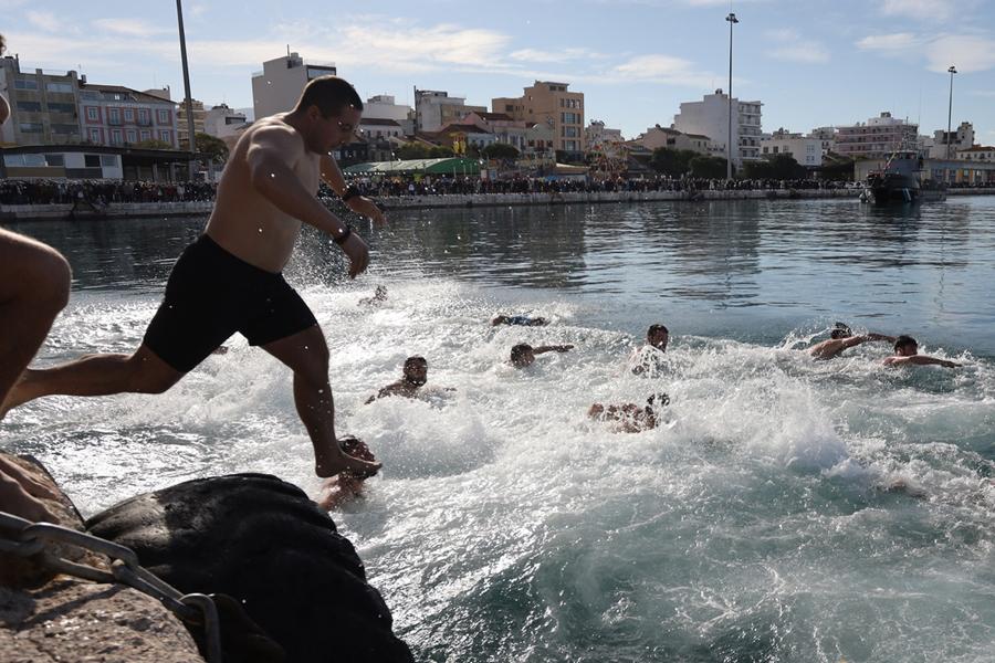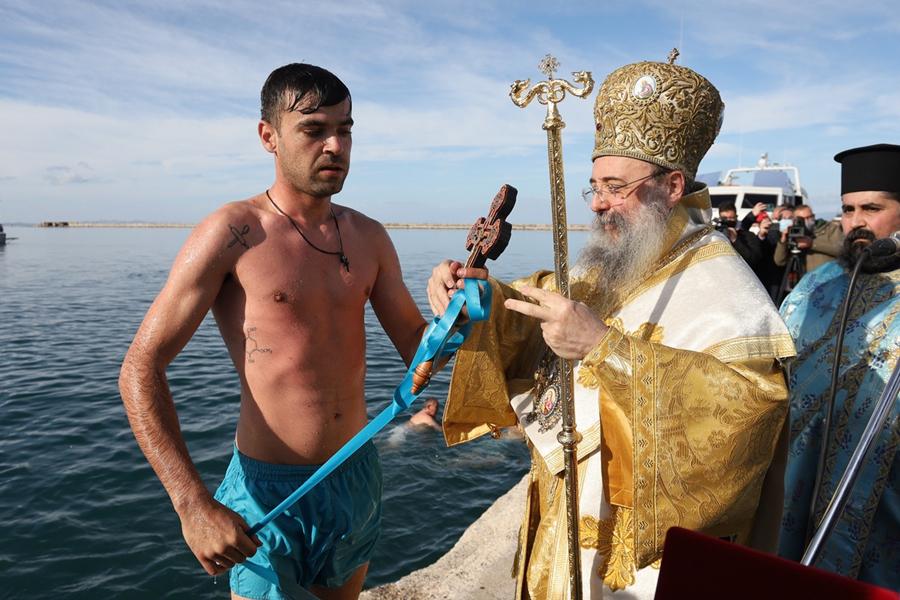 Περισσότερα από 30 άτομα βούτηξαν σήμερα στα νερά του βόρειου λιμανιού της Πάτρας, για να πιάσουν τον σταυρό. Τελικά, τον σταυρό τον έπιασε ένας 23χρονος, ο οποίος στην συνέχεια τον παρέδωσε στον μητροπολίτη Πατρών, Χρυσόστομο. Αμέσως μετά, ο μητροπολίτης δώρισε στο 23χρονο έναν σταυρό, ο οποίος με την σειρά του τον χάρισε σε μία 9χρονη, που είχε πέσει μαζί με τους υπόλοιπους κολυμβητές στα νερά του λιμανιού.