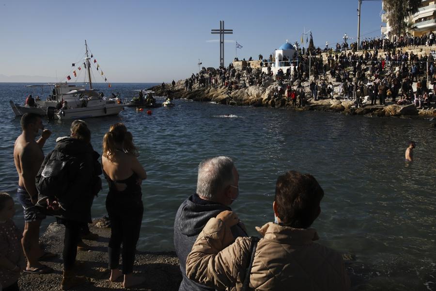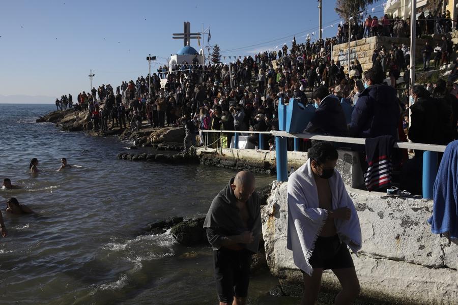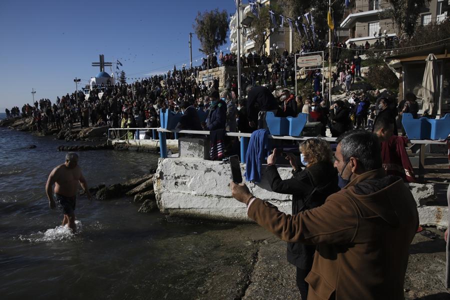 Συγκινητική ήταν η συμμετοχή των νέων παιδιών που έπεσαν στα κρύα νερά για να πιάσουν τον Σταυρό, αλλά και η προσέλευση του κόσμου, που τηρώντας όλα τα μέτρα προστασίας από τον covid 19 έσπευσε στον Αγιασμό των Υδάτων.