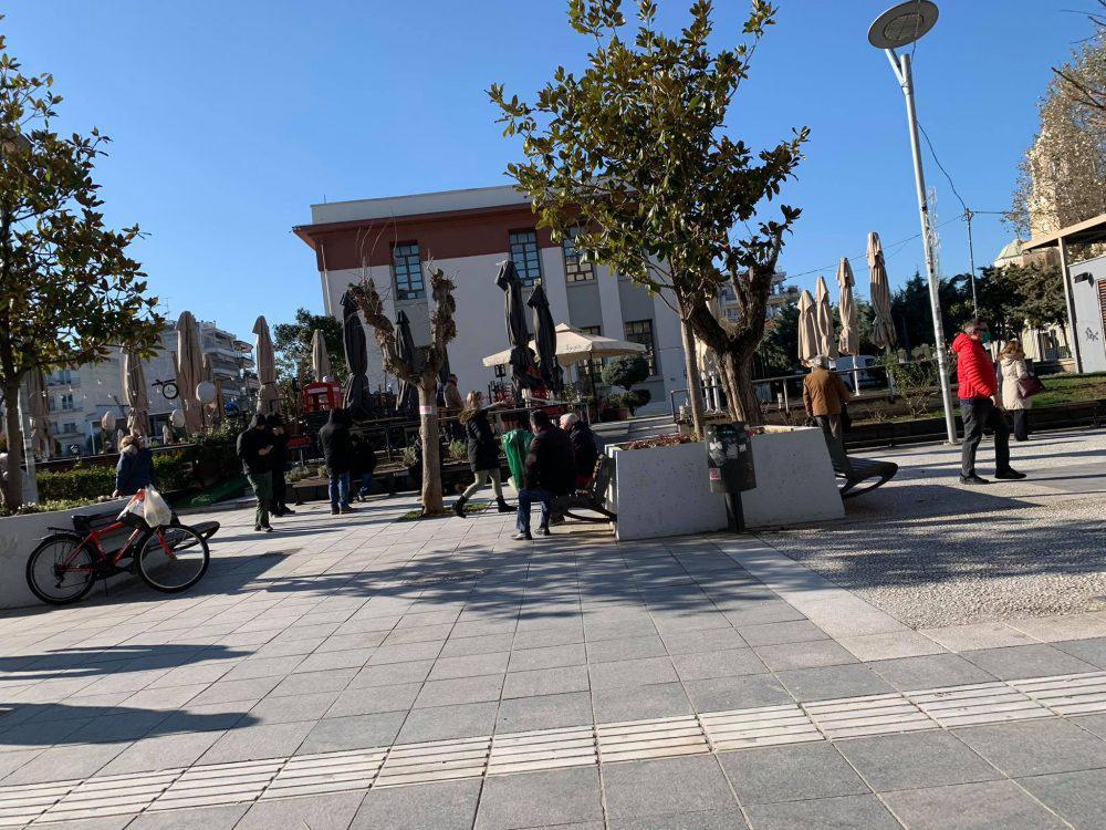 Πολλοί Καλαμαριώτες επιλέγουν τον πεζόδρομο για βόλτα και καφέ στο «χέρι», όπως μπορείτε να δείτε στις φωτογραφίες.