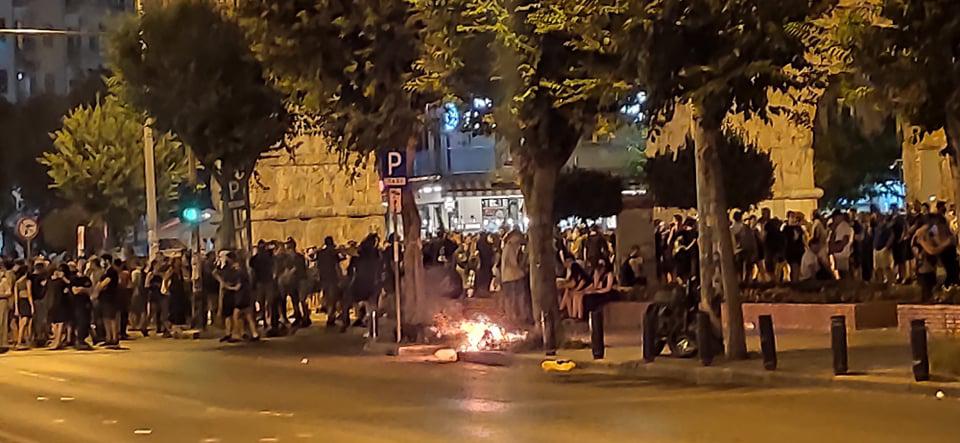 Μέλη του αντιεξουσιαστικού χώρου έβαλαν φωτιά σε σκουπίδια, χωρίς ωστόσο να προκληθούν επεισόδια.