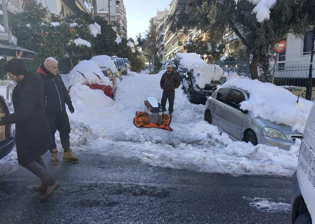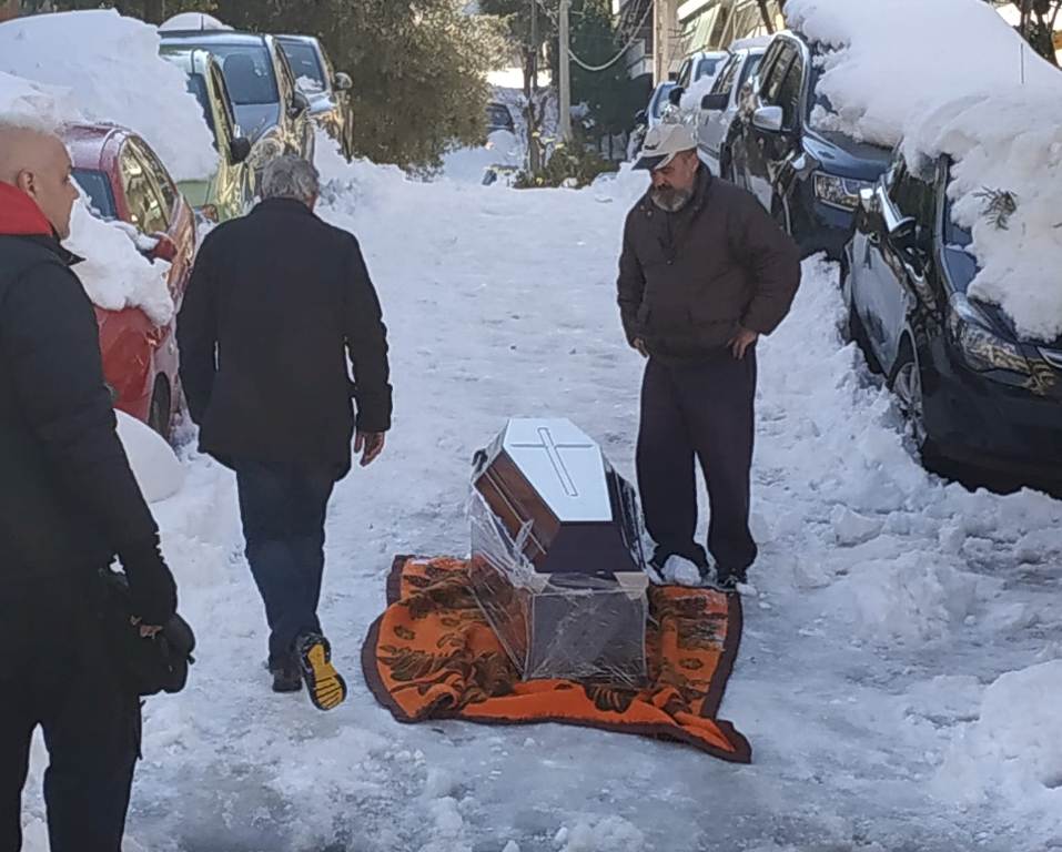 Εικόνες ντροπής στου Ζωγράφου: Σέρνουν φέρετρο πάνω στα χιόνια