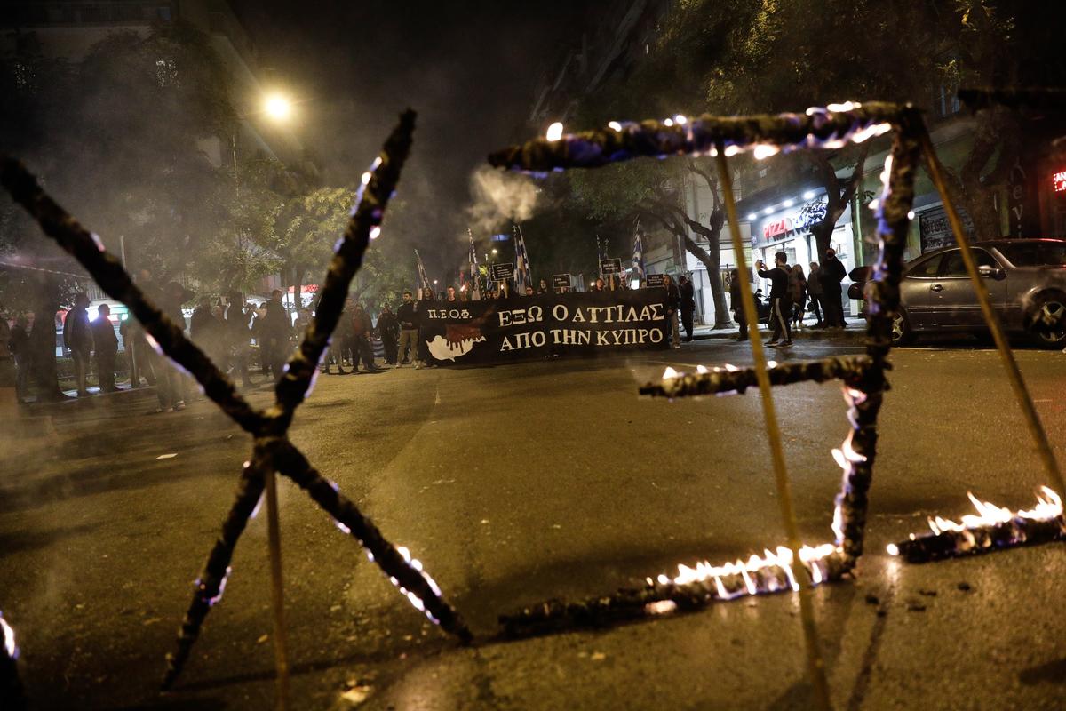 Κρατώντας πανό «Έξω ο Αττίλας από την Κύπρο» απεικονίζοντας την Πενταδάκτυλο και τα κατεχόμενα ως ματωμένη περιοχή, τα μέλη της Παγκύπριας Ενιαίας Οργάνωσης Φοιτητών (Π.Ε.Ο.Φ) Θεσσαλονίκης, που έχουν ξεκινήσει απεργία πείνας, έφτασαν μέχρι το τουρκικό προξενείο.