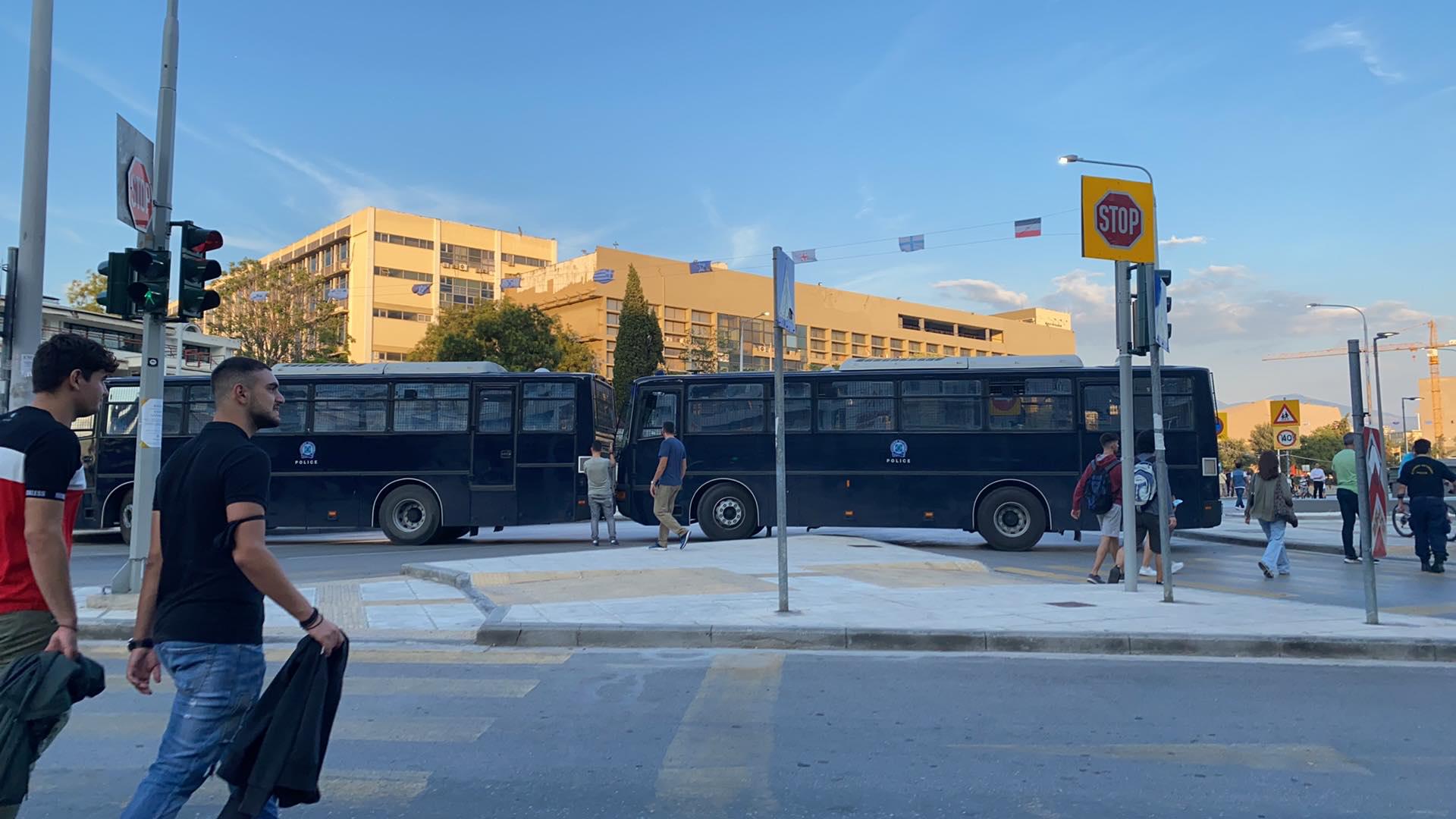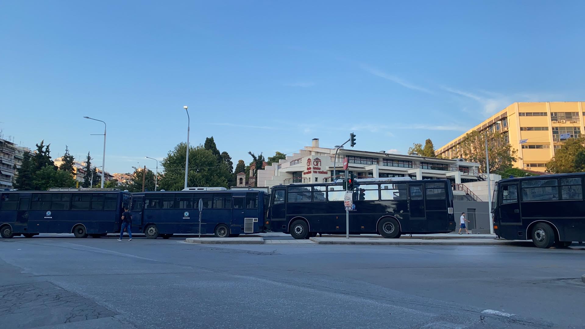 Η πορεία βρίσκεται στην Εγνατία, όπου υπάρχει έντονη αστυνομική παρουσία. Συγκεκριμένα κλούβες έχουν αποκλείσει την ΔΕΘ.