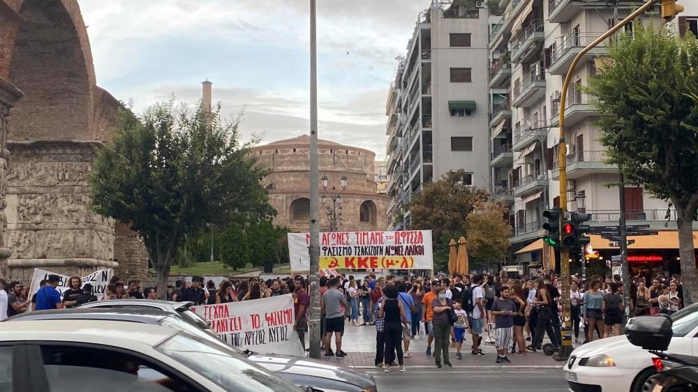 Αντιφασιστική πορεία για τα 7 χρόνια από τη δολοφονία του Παύλου Φύσσα πραγματοποιείται αυτήν την ώρα στο κέντρο της Θεσσαλονίκης. Η πορεία ξεκίνησε πριν από λίγο, βρέθηκε στην Εγνατία με Αριστοτέλους και τώρα στη Βενιζέλου. Νωρίτερα οι διαδηλωτές συγκεντρώθηκαν στην Καμάρα υπό την παρουσία της αστυνομίας, ενώ η τροχαία ρυθμίζει την κυκλοφορία.