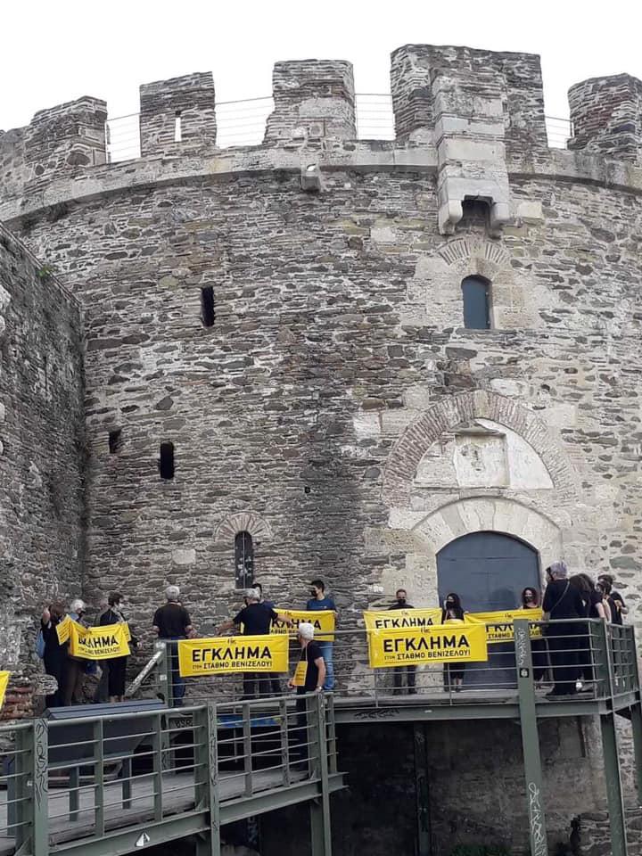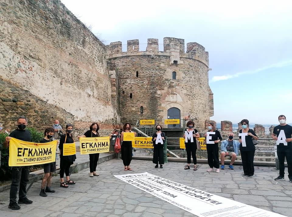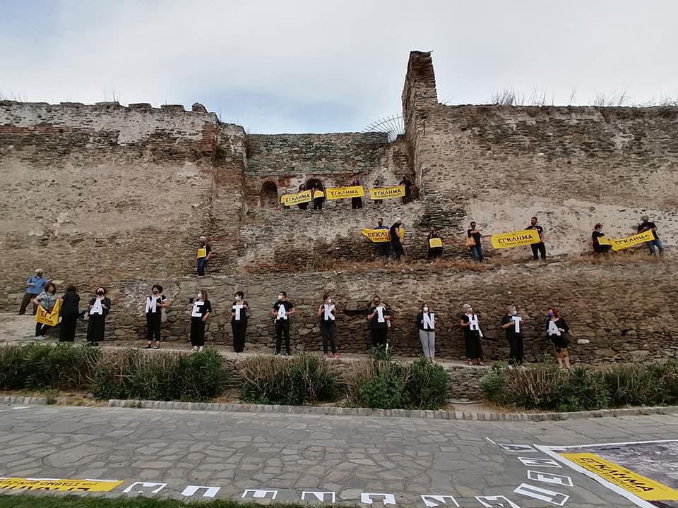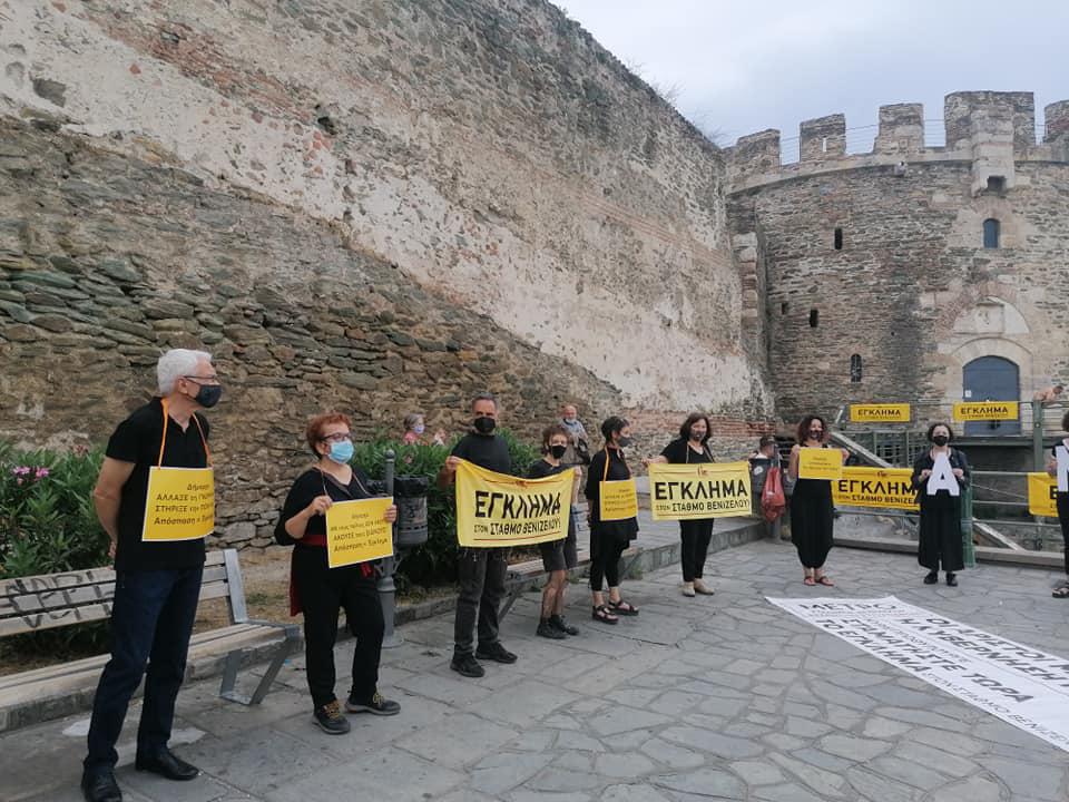 Σιωπηρή διαμαρτυρία πραγματοποίησε χτες το απόγευμα, στα Κάστρα στον Πύργο Τριγωνίου, η Κίνηση Πολιτών Θεσσαλονίκης για τα Αρχαία της Βενιζέλου, δηλώνοντας πως πρέπει να μείνουν αμετακίνητα.