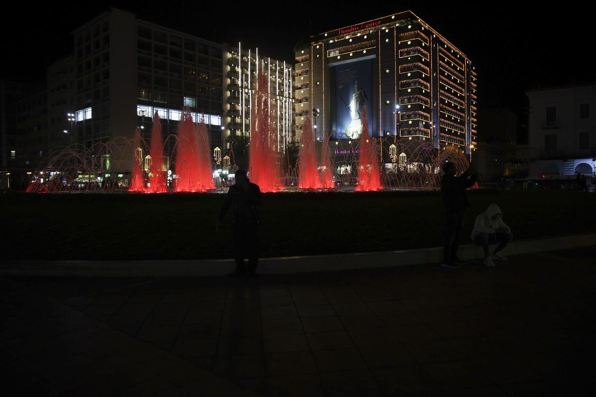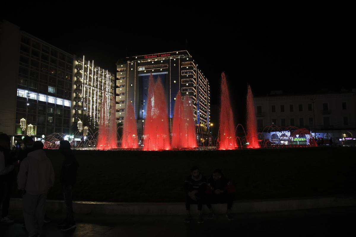 Με κόκκινο χρώμα ο Δήμος Αθηναίων φωταγώγησε το βράδυ της Τετάρτης την πλατεία Ομόνοιας.